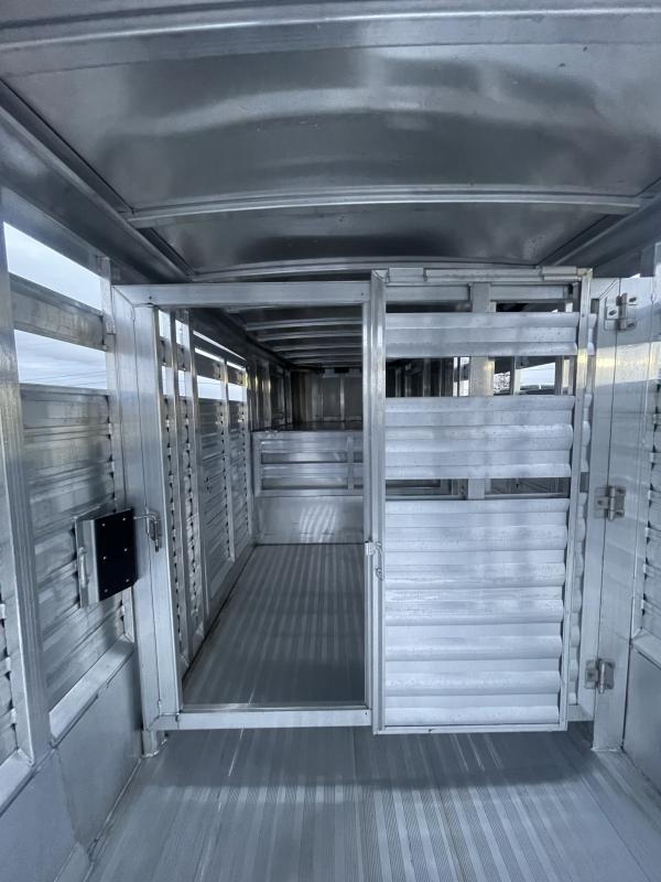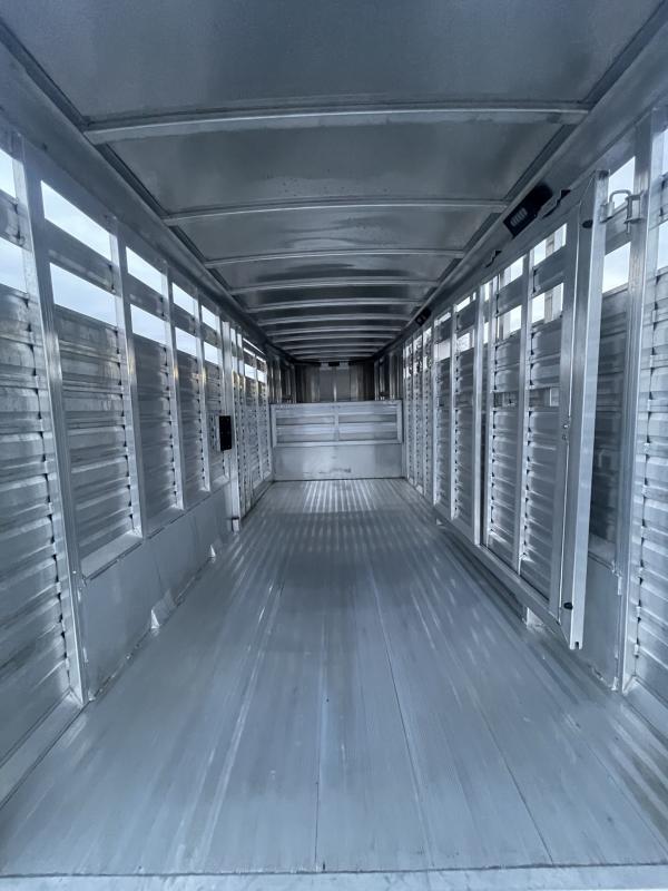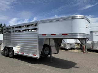 REDUCED $1100 FROM ORIGINAL PRICE TRAILER FEATURES: * 7’0” outside width * 7’2” inside height * 16’ Length * Extruded aluminum slat outside stock area; .063 white aluminum sheets on nose area * Two air gaps w/ Plexiglas tracks * (2) 7,000 lbs. rubber torsion axles w/ electric brakes * 16’-26’ = Five 16” 8 hole steel wheels w/ 10 ply import tires (includes spare) * Full swing center gate w/ slider and heavy-duty slam latch w/ external release * Full swing rear door w/ air gaps and easy-glide slider w/ handle on rear door * Heavy-duty drop gate w/ spring loaded latches * Heavy-duty 54” streetside access door w/ air gaps * Extruded aluminum fenders * Full-width rear rubber bumper * Single piece aluminum roof * Interlocking extruded aluminum non-skid plank floor w/ 2” x 4” I-beams on 10” centers * Running Boards: Standard * Kingpin hitch w/ 2 5/16” adjustable coupler; * Single leg landing gear w/ removable crank handle * Breakaway switch w/ battery & slip hook safety chains * One LED dome light per compartment w/ switch on rear frame and one LED dome light in gooseneck nose * LED brake and running lights * 3/8 transferable warranty ** Descriptions Subject to Error** For more information on this trailer please contact Double J Trailers at 541-812-1234. Thank You! Financing Rates are Determined by Credit Score and Year of the Trailer. All trailer prices are cash prices. Thank you! Trades Welcome Two Lots To Better Serve You! Woodland Washington & Albany Oregon We have over 100 trailers in stock. Please view our entire inventory at [www.double-j.com](http://www.double-j.com/) thank you! *Double J imposes a surcharge of 3% on credit card purchases of amounts greater than $500*