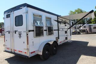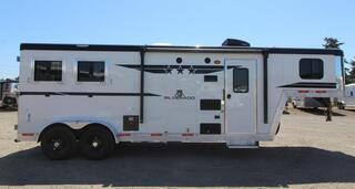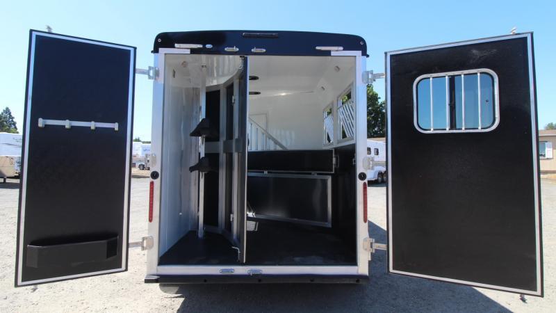 REDUCED PRICE $4,400 3/28/2024 The Silverado offers all the features and options you expect in a luxury coach with the durable, lighter weight of an aluminum frame. UPGRADED FEATURES: * Hydraulic Jack * Load light package - Two rear lights, one on each side of horse area * Lined & Insulated Horse Area Ceiling * Drop down windows on tail side * Powered Awning * Queen mattress STANDARD FEATURES: * 8ft Short wall Living Quarters * Sofa - Converts into a sleeping area * 24” LCD TV w/ locking swing arm * Chestnut Brown interior * A/C - 13,500BTU * Furnace 18,000BTU * Microwave * Refrigerator * Stainless Steel Kitchen Sink * Recessed Cooktop w/ Range Hood * Residential Faucets * Shirt Closet(S) W/ Mirrored Inserts In Bedroom * Shower W/Dual Control Handles * Skylight In Shower * Porcelain Toilet * TV/Radio Antenna * Upgraded Counter Top Throughout * Upgraded Floor Covering Throughout * Upgraded Graphics Package * Vinyl Valances W/Mini Blinds Other Features: * Water Heater Gas DSI (6 Gal) * 39 Gallon Fresh Water tank * 35 Gallon Grey water holding tank * 35 gallon Black water holding tank * Exterior Water Spigot * Led Exterior Lights * Led Lighting Throughout * LP Tanks (2) W/ Dual Regulator * Two Batteries, Grp 24 W/ Shut-Off * Rear Load Light (1) * 6000# Axles * Spare Tire & Rim * ST235/80R16 LRE Tires With Black Mod Steel Wheels * Step (At Entrance Door) Horse Area: * 3-Way light Switch For Horse Area * 30 Amp Service W/ Detachable 30 Amp Power Cord * 30X24 Drop Down Windows Head/Butt Side * 24X24 Drop Down Escape Window * Lower Stud divider * Side escape door * 60/40 Rear Load Doors Tack Area: * Folding rear tack * Bridle Hooks * Fixed Saddle Tree * Brush Tray ** Descriptions Subject to Error** For more information on this trailer please contact Double J Trailers at 360-225-1234. Thank You! Financing available to qualified buyers! All trailer prices are cash prices. Thank you! Trades Welcome Two Lots To Better Serve You! Woodland Washington & Albany Oregon We have over 250 trailers in stock. Please view our entire inventory at [www.double-j.com](http://www.double-j.com/) thank you! *Double J imposes a surcharge of 3% on credit card purchases of amounts greater than $500*
