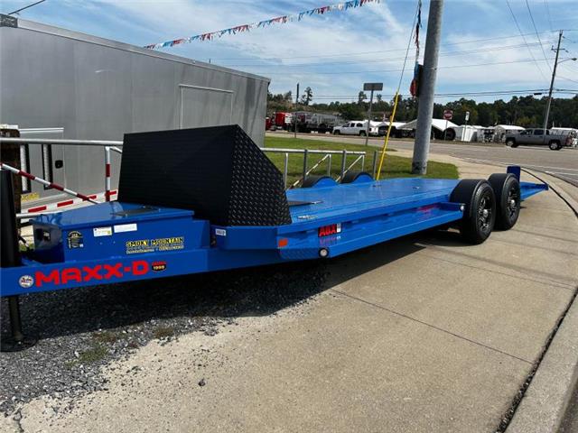 THE NEXT GENERATION OF CAR TRAILER Finally, an answer to the age-old dilemma of loading ultra-low sports cars and specialty vehicles. We took the concept of an air-bagged car suspension system and applied it to a car hauling trailer. The result is an incredibly easy to use trailer that loads even the lowest of vehicles with ease: The MAXX-D DROP-N-LOAD car trailer. The knife-edge tail on a MAXX-D Drop-N-Load comes right down to ground level and gives the entire deck an industry-leading load angle. At the front of the trailer, we install a tall diamond-plated rock shield to protect your valuable cars from road debris. Base weights start at 3,300 pounds, and we offer the DROP-N-LOAD in 20’ and 24’ lengths. While we designed the DROP-N-LOAD A6X with sleek styling and accents that highlight the lines of performance vehicles., this trailer isn’t just for race cars. The low deck angle eliminates the need for ramps, making loading any car, truck, or SUV much safer and more convenient. And while there is a definite component of the DROP-N-LOAD that is built for show, there’s still plenty of ”go” underneath the front-mounted toolbox. Dual Interstate batteries and rugged pneumatics mean the A6X DROP-N-LOAD will be working hard for years to come. Like all MAXX-D Trailers, the A6X DROP-N-LOAD is finished with our industry-leading powder coating process. Six different steps all work together to give your flatbed trailer a premium powder-coated steel surface with unmatched durability and your choice of nine different colors. Through our expansive dealer network, we give you the choice to configure your A6X DROP-N-LOAD trailer with a variety of options to fit your needs. Whether it’s an in-floor toolbox, full-length E-track for tying down, or a Warrior winch, you can get an A6X DROP-N-LOAD trailer package that’s perfect for your needs. You’ll ask yourself how you ever got along without the safety, convenience, and features provided by the A6X Drop-N-Load trailer. Do something great with a MAXX-D Drop-N-Load trailer! STANDARD FEATURES 2 5/16” Adjustable Coupler Toolbox Spare Tire Mount Bolt-On Diamond Plate Aluminum Single Fenders 1/8” Diamond Plate Steel Floor 4 Flushmount Swivel D-Rings Split Tail Knife Edge NATM Compliant Flushmount LED Lights 4” x 3” x 3/16” Stake Pockets and 2” x 3/8” Rubrail ST225/75R15 D Radial Tires 15” Black Mod Wheels Drop-N-Load Air Suspension With 4” Drop Axles 2 - 5.2K Brake Axles 9 Gallon Air Tank 3” Channel Crossmembers on 16” Centers 7K Drop-Leg Jack 6” Channel Main Frame and Tongue AVAILABLE OPTIONS Hydraulic Jack ST225/75R15 D Radial Tires On Aluminum Wheels Bolt-On Aluminum SA Fenders Stealth Black Extra Flush Swivel D-Rings 30” Aluminum Rock Shield Stealth Black Diamond Plate Running Boards In-Floor Toolbox Warrior 12K Winch Mounted On Plate/Channel 7-Watt Solar Panel Full Length E-Track In-Floor Lights null