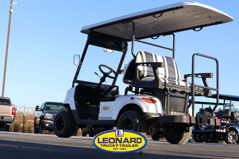 View Inventory: https://leonardtrailers.com/inventory/39836 This Bintelli Nemesis 4PR street legal golf cart is the newest addition to the Bintelli fleet, and it is loaded! This comes with a powder-coated frame, AC motor, LED lighting, hydraulic brakes, two-tone premium seats, on-board smart charger, dual USB plugs, extended roof, rear flip seat with cupholders and drop-in cooler, headlights, tail lights, turn signals, DOT windshield with wiper, DOT tires, DOT 2-point seat belts, and a 17 digit vin number. All Bintelli Electric Vehicles are built in the USA! Call for more details! *We believe these specifications to be accurate. Any discrepancies are unintentional. PLease verify all information with a sales associate prior to purchasing* Stock Number:39836