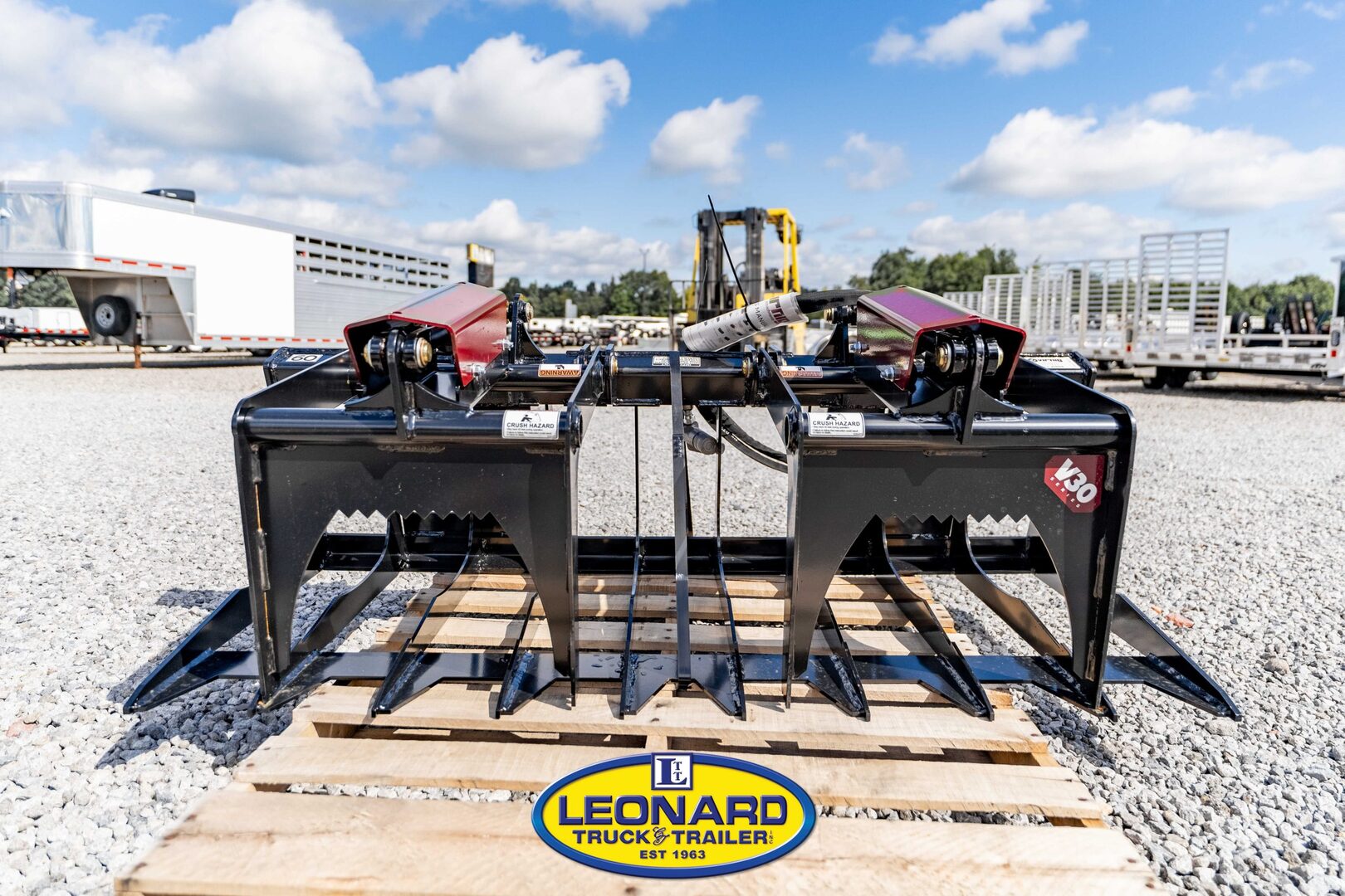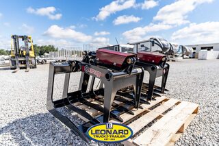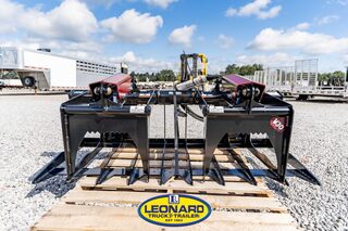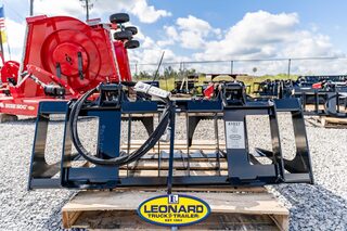 View Inventory: https://leonardtrailers.com/inventory/41037 V30 COMPACT TRACTOR SKELETON ROCK GRAPPLE THIS ATTACHMENT INCLUDES UNIVERSAL SKID STEER MOUNTING Redesigned as a two-cylinder independent grapple. 25% lighter than previous version to haul more material. Every tine is constructed of one piece of 1/4” Grade 50 steel, from tip to top brace, to add rigidity. Hybrid side plates keep rocks secure while still allowing handling material wider than the grapple possible. Tight 3” tine spacing to pick rocks and leave dirt behind. Raised ridge in center of tines (rock dam) and notch near tips secure rocks while digging. Fully gusseted tine tips for added strength. NitroSteel cylinder rod and Teflon coated bushings on hinge. OPTIONS Optional cylinder guards available. Optional 90” hoses & 1/2” fittings Stock Number:41037