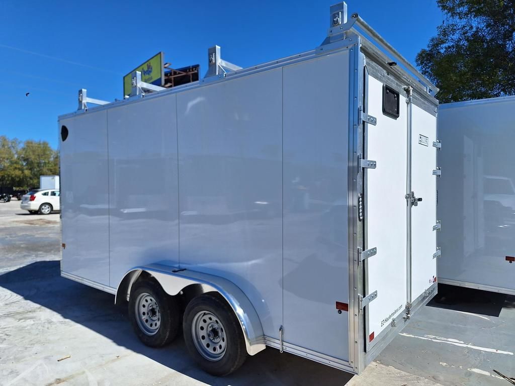 2024 EZ HAULER ULTIMATE CONTRACTORLADDER RACKALL ALUMINUMCAT WALK SYSTEM ON ROOFBUILT IN LADDER IN FRONTREAR ROLLER FOR LAST LADDER RACKREAR DOUBLE DOORSREAR REMOVABLE ALUMINUM RAMPSLED LIGHTSELECTRIC BRAKESWHITE .030 SIDES