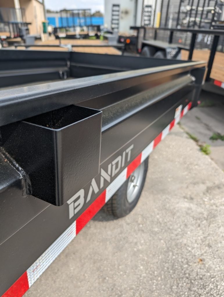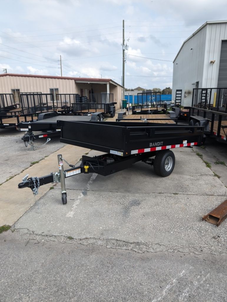 BANDIT 4.5X8 DUMP TRAILERLED LIGHTS2” BALL COUPLERRAMPSSINGLE RAMPSPRING AXLEBATTERY CHARGERSINGLE RAMBLACK POWDER COATED