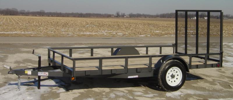2024 LIBERTY 78” ? 12’ SA UTILITY w/ TUBE RAILS Single 3500# 4 Leaf Spring Axle ST205/75R15 LRC Radial Tires 15” 5 bolt Silver Mod Wheels Model: LU3K78X12C4 No Brakes, Not Required Spare Tire Not Included 7K Drop Leg Set Back Jack GVWR: 2990# Est. Empty Weight: 1150# Black 2” Coupler, 4 wire plug 4” channel frame 2” x 2” angle crossmembers and uprights 3” structural channel wrapped tongue 2” treated pine floor Sealed wiring harness 2 1/2” x 1 1/2” tube top rail 12” high across front and down sides Heavy duty full width rear gate, tube construction with 6 gauge expanded mesh Spring assist for rear gate LED lighting Spare tire mount only