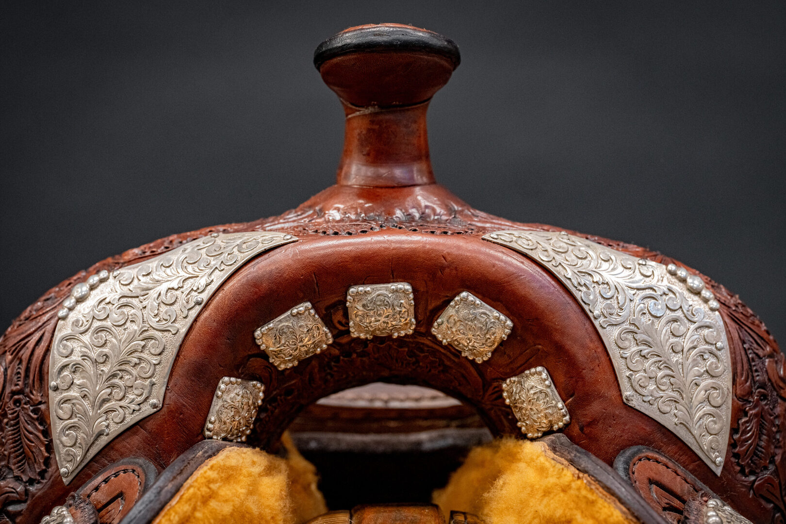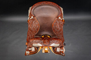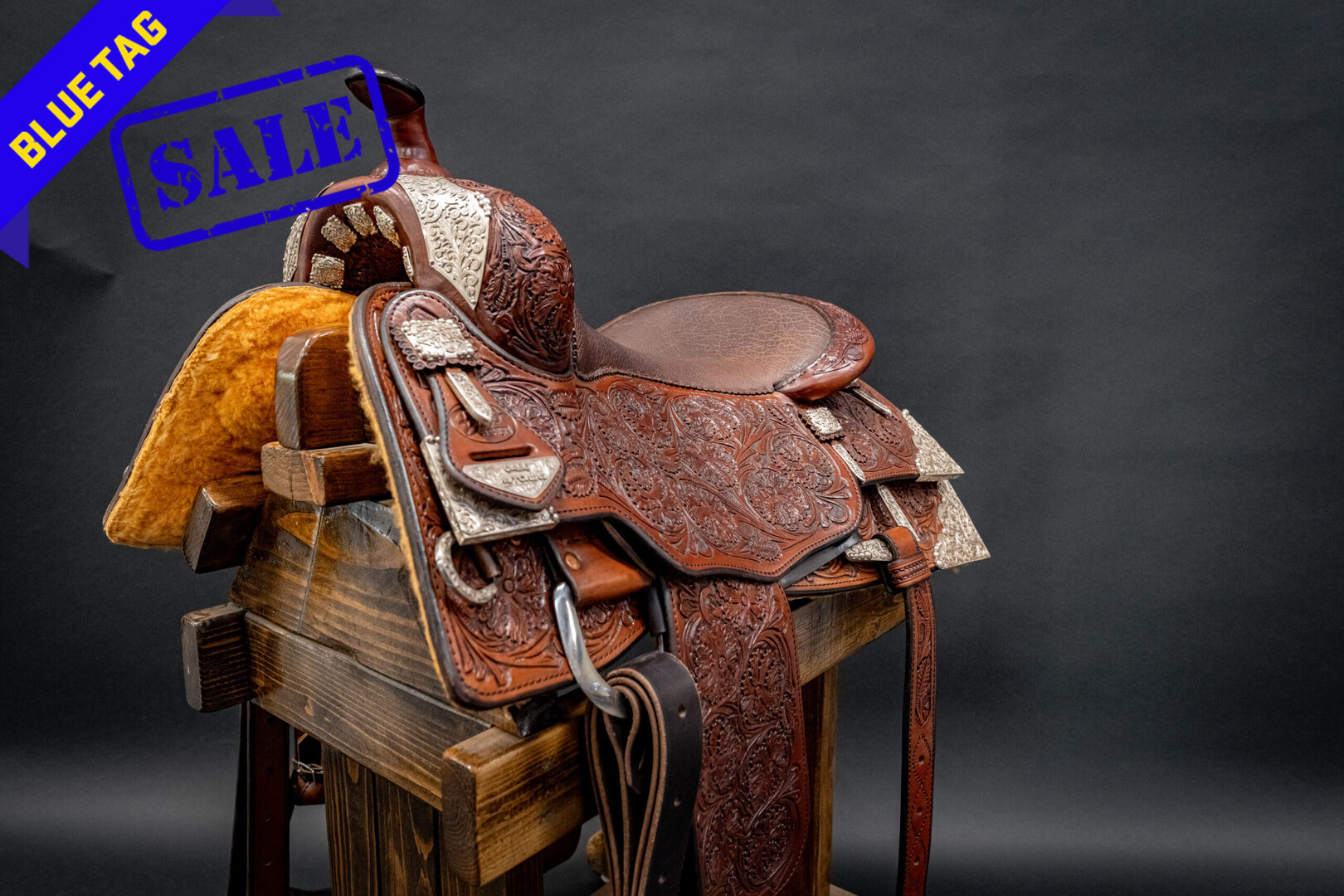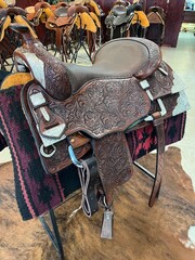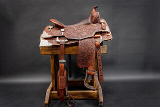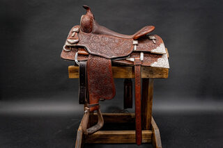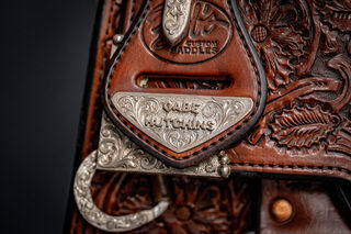 View Inventory: https://leonardtrailers.com/inventory/42052 Gabe Hutchins Reining Saddle This Bobs Custom Saddle is built on a 17” AF Tree with a 16.5 inch California Seat. Rear Cinch included Since 1977, Bob’s Custom Saddles are built with the finest trees available; from hand-picked, top-grain hermann oak leather, real sheepskin, and hand-engraved sterling silver or silver overlay. Bob’s hand-tool every saddle, hand-lay every ground seat, hand-stitch every seat, and hand-craft each cantle. Their superior quality, craftsmanship, and performance are a prime choice for premier horsemen around the world. Proudly presented by Leonard Truck & Trailer. **We believe that these specifications to be accurate. Any discrepancies are unintentional. Please verify information with a sales associate prior to purchase.** Stock Number:42052