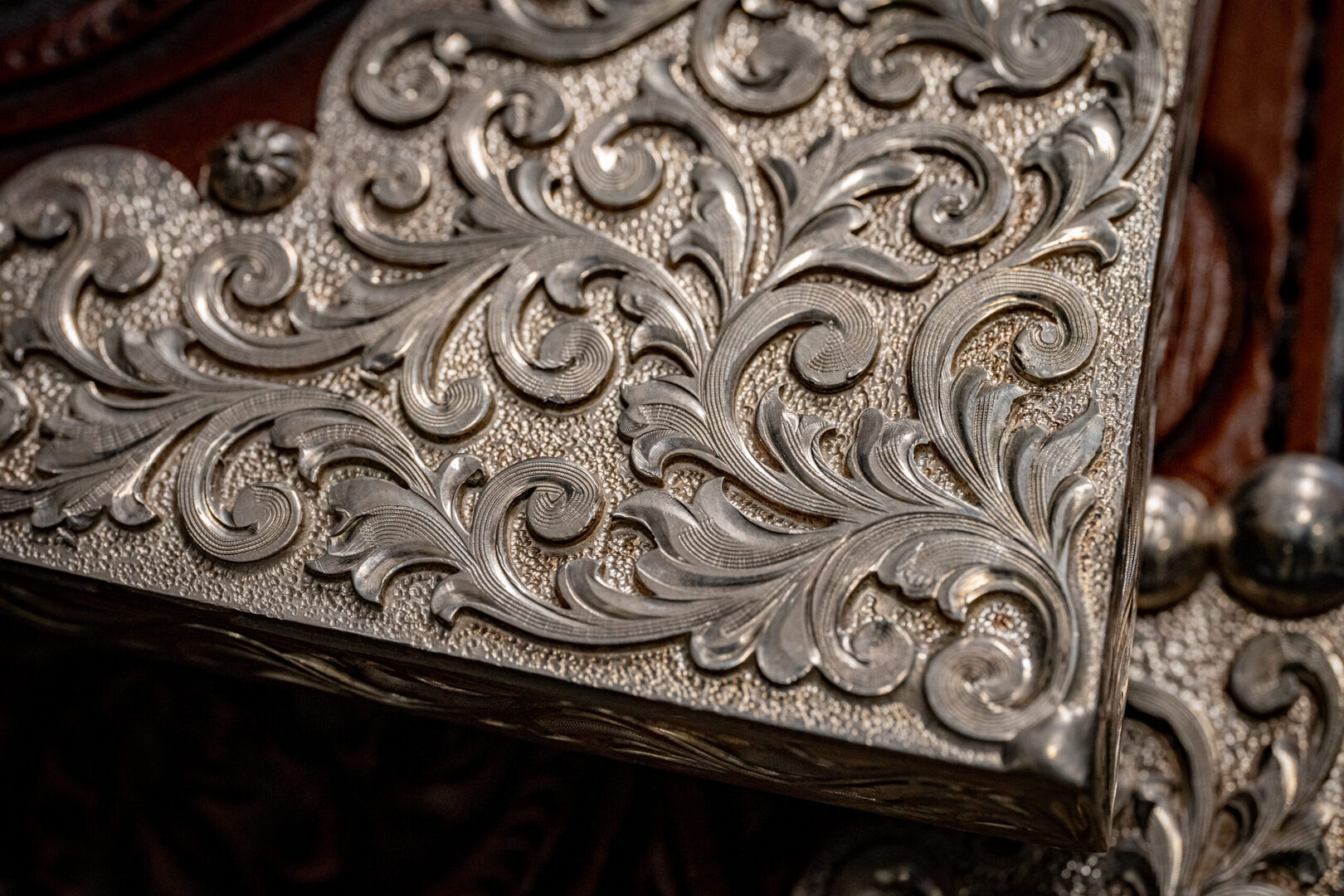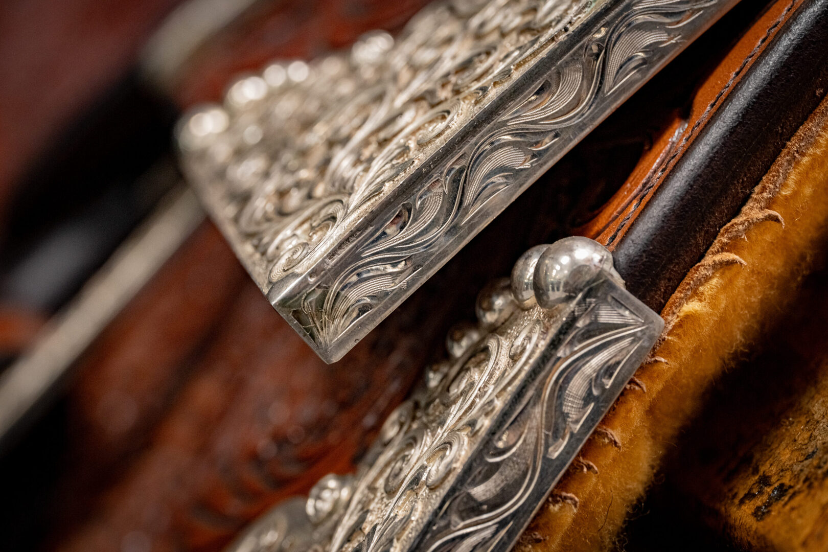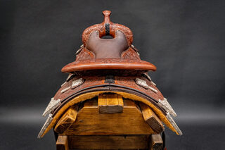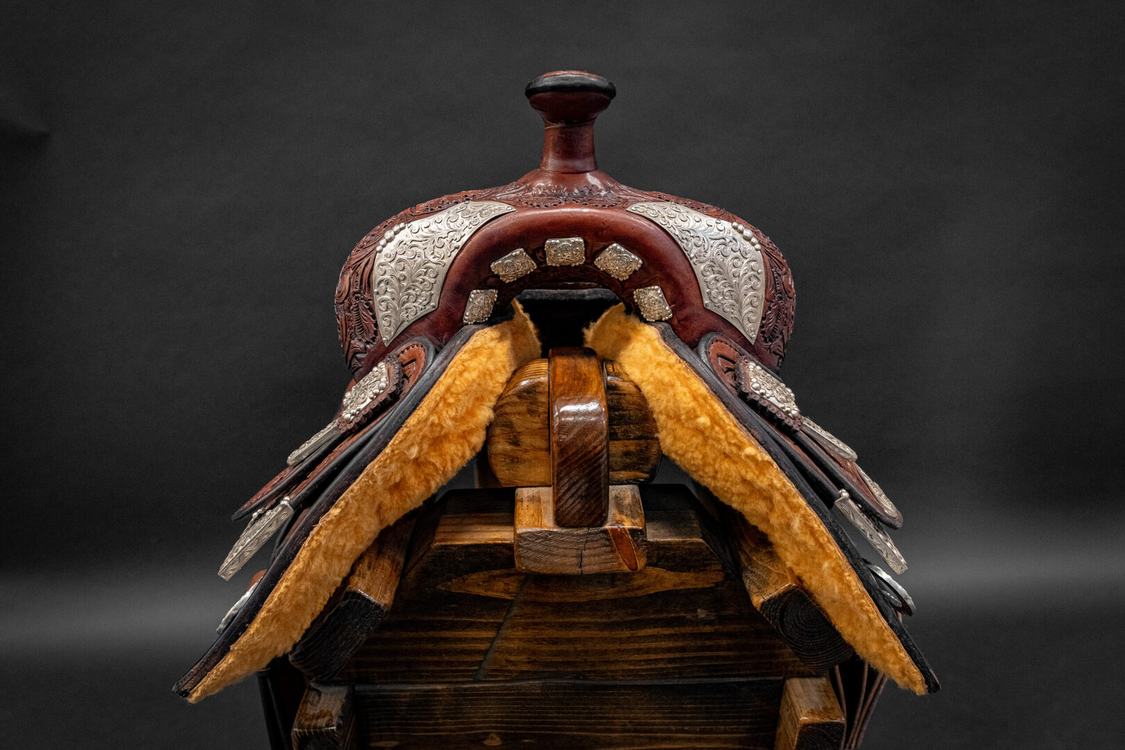View Inventory: https://leonardtrailers.com/inventory/42052 Gabe Hutchins Reining Saddle This Bobs Custom Saddle is built on a 17” AF Tree with a 16.5 inch California Seat. Rear Cinch included Since 1977, Bob’s Custom Saddles are built with the finest trees available; from hand-picked, top-grain hermann oak leather, real sheepskin, and hand-engraved sterling silver or silver overlay. Bob’s hand-tool every saddle, hand-lay every ground seat, hand-stitch every seat, and hand-craft each cantle. Their superior quality, craftsmanship, and performance are a prime choice for premier horsemen around the world. Proudly presented by Leonard Truck & Trailer. **We believe that these specifications to be accurate. Any discrepancies are unintentional. Please verify information with a sales associate prior to purchase.** Stock Number:42052