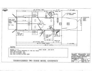 View Inventory: https://leonardtrailers.com/inventory/42195 2025 New Hart T2HG Gooseneck Horse Trailer STRAIGHT LOAD MODELSThe STRAIGHT LOAD Models offered by Hart present a variety of designs, each for a particular use.  Hart offers three different models of 2 horse STRAIGHT LOAD trailers.  The ’Thoroughbred’ and the ’Walk-Thru’ models are designed for large-bodied horses.  Both of these models are 6’8” wide, 7’7” tall and have 11’ long stalls.  Each model is available in bumper pull and gooseneck configurations.The ’Thoroughbred’ model is equipped with double rear doors, a full-width ramp behind the doors, a removable stall divider and full height escape door on each side of the stall area. 22’9” long x 6’8” wide x 7’7” tall Insulated and lined walls AND roof horse area Padded breast and butt bars Padded divider Swinging head stall Large windows at rear on both sides Side Ramp with Dutch Door  Ramp / 50-50 rear doors Pop up Roof Vents  Dome Lights in Dressing & horse areas plus external spot light Large Windows in Goose Neck Silver Sided Extrusion 5,900 pounds empty, 16,500 pounds GVW 8 Year Structural Warranty Please call us for any additional information! **We believe these specifications to be accurate. Any discrepancies are unintentional. Please verify information with a sales associate prior to purchase.** Stock Number:42195