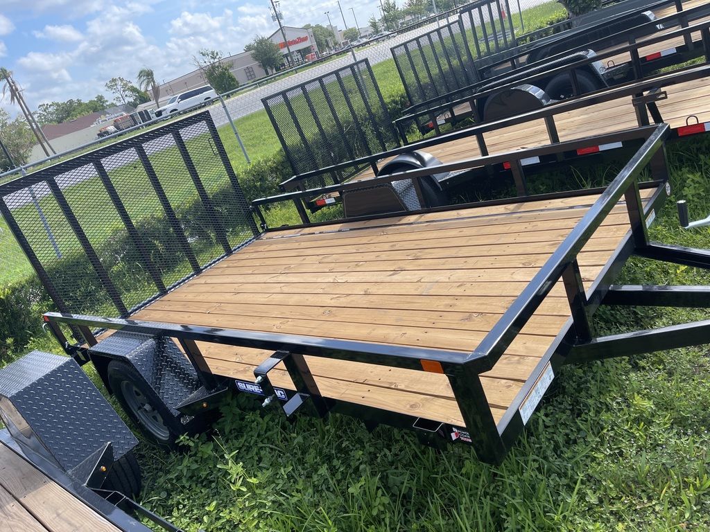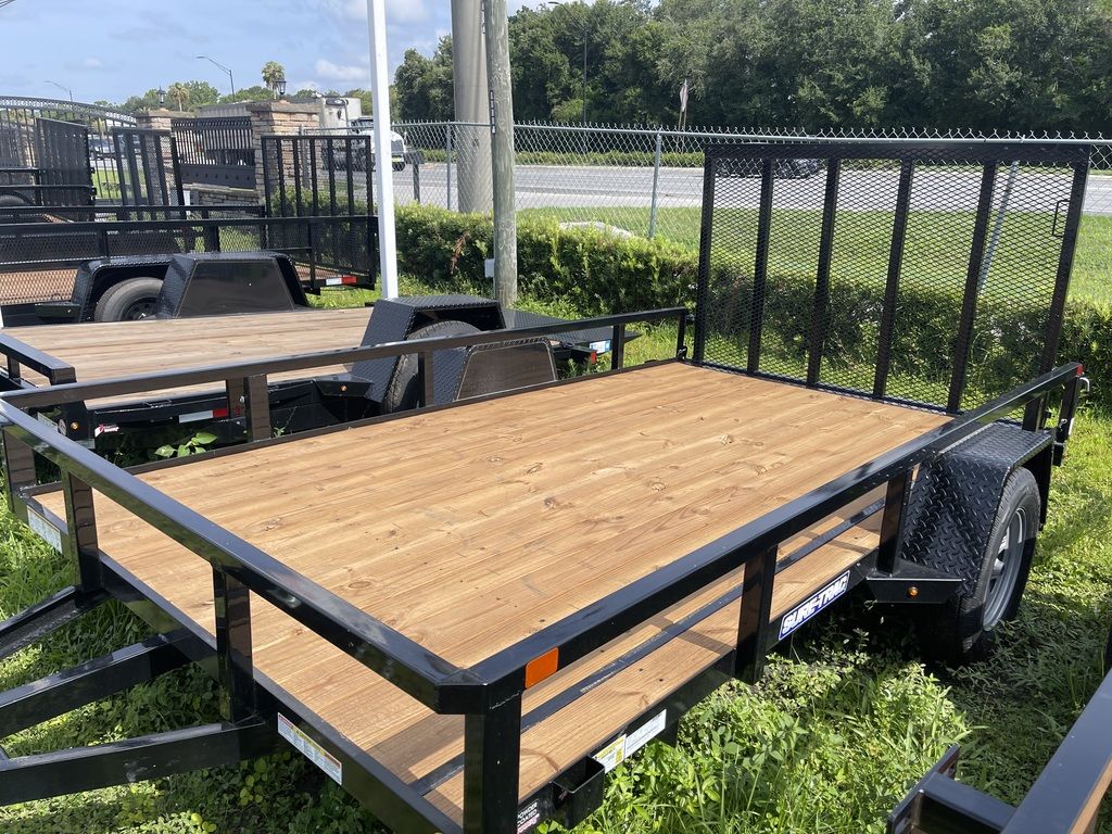 SURE-TRAC 7X1 SINGLE AXLE UTILITY TRAILERSPRING ASSIT GATELED LIGHTSBLACK POWDER COATEDWOOD DECK