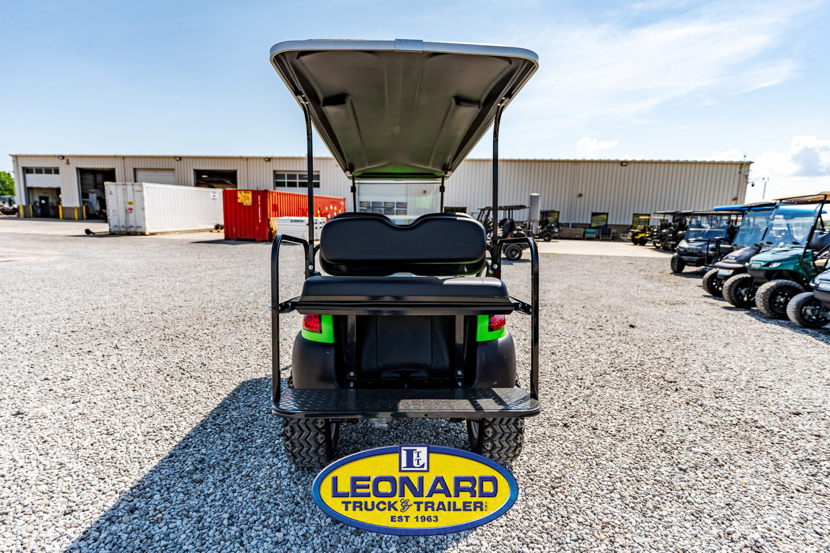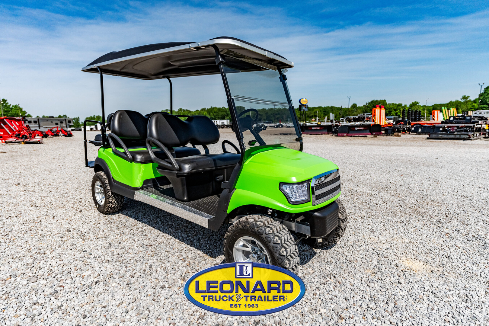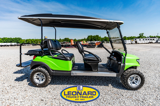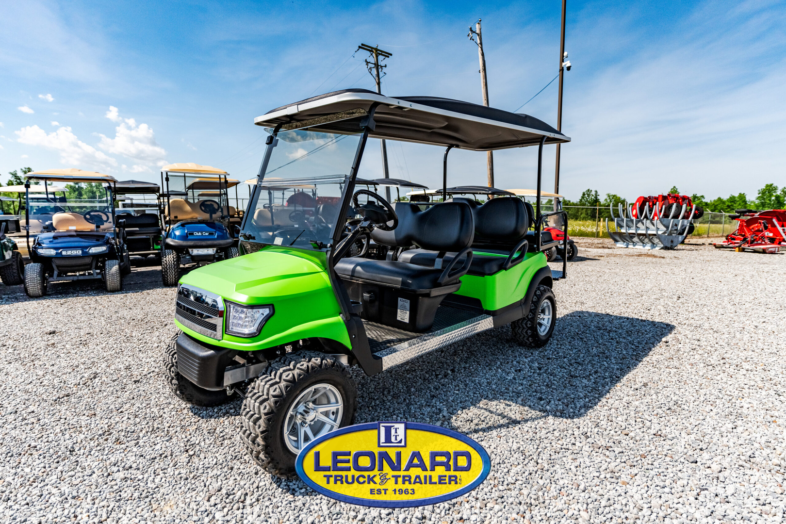 View Inventory: https://leonardtrailers.com/inventory/42453 Used 2014 CLUB CAR PRECEDENT stretch lifted electric cart with LED head and tail lights, seat kit and 116” eagle top. All terrain tires Stock Number:42453
