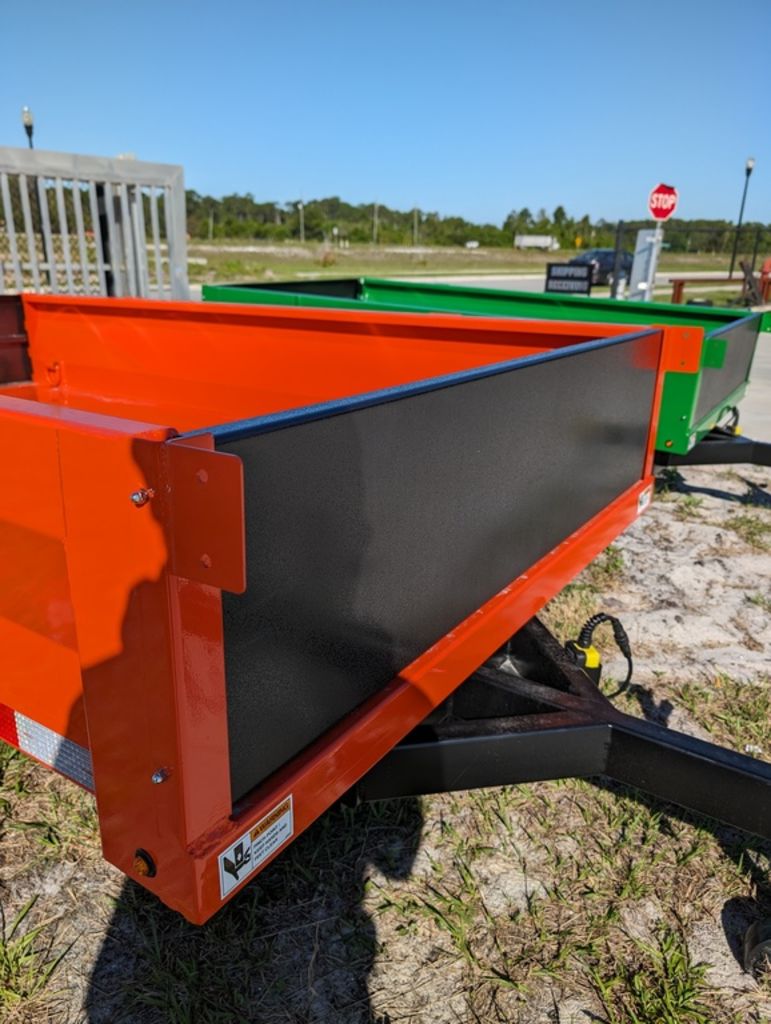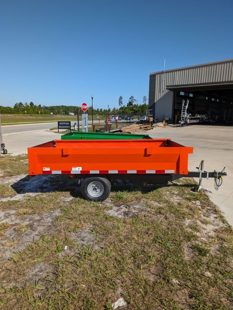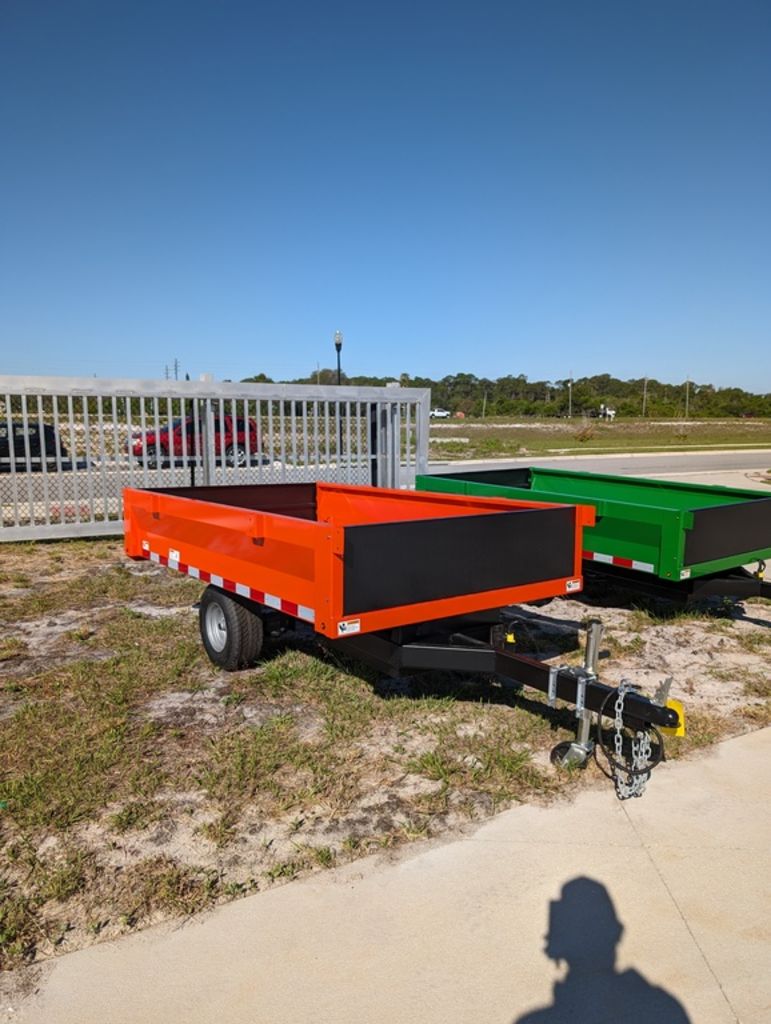 BANDIT 4.5X8 DUMP TRAILERLED LIGHTS2” BALL COUPLERRAMPSSINGLE RAMPSPRING AXLE18 AMP BATTERY CHARGERSINGLE RAMKUBOTA ORANGE POWDER COATED