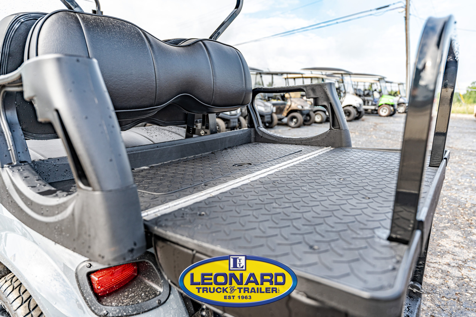 View Inventory: https://leonardtrailers.com/inventory/42721 Used 2019 EZ GO TXT gas cart with executive seat kit and 80’ eagle top. All terrain tires Stock Number:42721