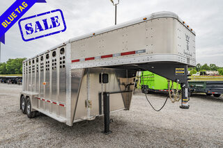 View Inventory: https://leonardtrailers.com/inventory/42778 Stock# 42778 New 2026 Wilson PSGN-5724 Gooseneck Stock Trailer Our most popular gooseneck stock trailer. The Ranch Hand punch style aluminum livestock trailer offers you the same reliable construction as our sales leading livestock semi-trailers in a stock trailer having all the essential features and a convenient but limited list of available options. Choose between natural aluminum sides or opt for the popular black or gun metal sides. Wilson goosenecks are made stronger to endure the toughest of demands, yet remain quieter and easier to pull for a longer period of time. Model: PSGN-5720 Warranty: 3yr- Limited Trailer Specifications – Model PSGN-5724 ”Ranch Hand” Finish: Natural Length: 24 ft Width: 84 in interior, 7 ft 3 in O/A (standard) Height: 6 ft 8 in interior Nose Style: (T) Tapered Front Nose Finish: Natural Coupler: 2-5/16 in Adjustable GVWR: 16,000 lb Package (A) with 7,000 lb Dexter Axles (Standard) Axles: (2) 7,000 lb – 102 in wide (22.5° up) (Standard) Hubs: E-Z Lube Brakes: Electric Wheels: 6.00 x 16, 8-lug Heavy Duty Silver Modular Tires: ST235/85R16 Advance Radial, 14-ply Tire Carrier: Standard Landing Gear: STD 12,000 lb Drop Leg, Spring Loaded Roof: STD Adhesive Attached Stretched Aluminum Side Pattern Style: (N) Floor: .110 Corrugated T.P. with 9 in X-Bar Spacing (Per Ft) (Standard) Nose Floor: Flat Aluminum (STD) Running Boards: Full Length (STD) Nose Gate Style: (D) Fold Down Crowd Gate Style: (A) Full Swing (STD) Gate Hardware: Outside Release Gate Location: One Gate, Standard Location Rear Door Style: (E) Outside Slide Full Swing Rear Door Slam Catch: (STD) Side Door: 33 in Opening, Driver Side (STD) Lights: Grote Micro Nova (STD) LED Interior Lights: STD Electrical Plug: 7-Way (STD)     We offer outstanding financing options, accept trades, and can arrange nationwide NO HASSLE delivery! Inquire today for more information! (888) 333-6613 **We believe these specifications to be accurate. Any discrepancies are unintentional. Please verify information with a sales associate prior to purchase.** Stock Number:42778