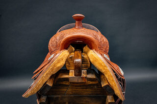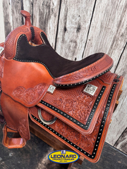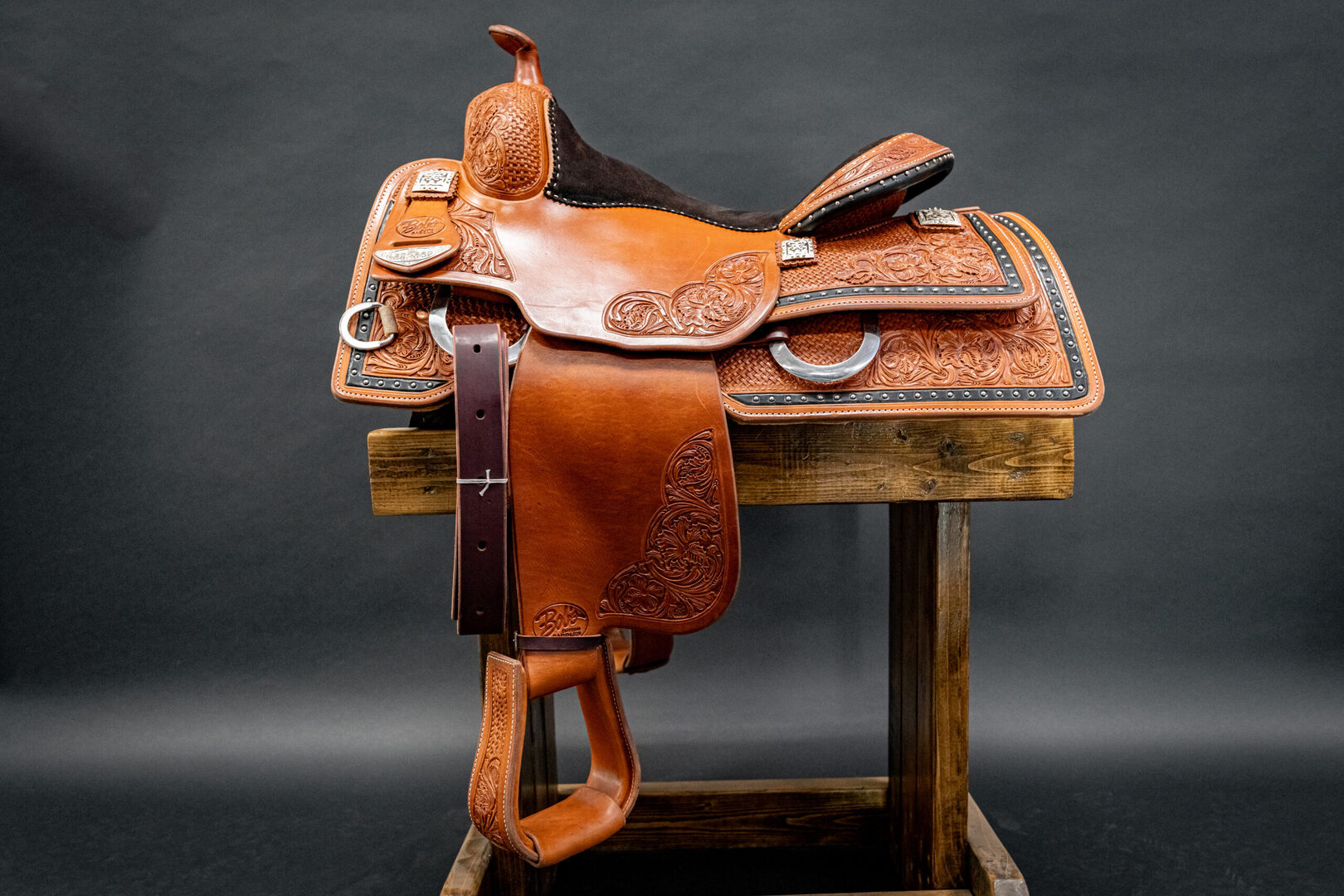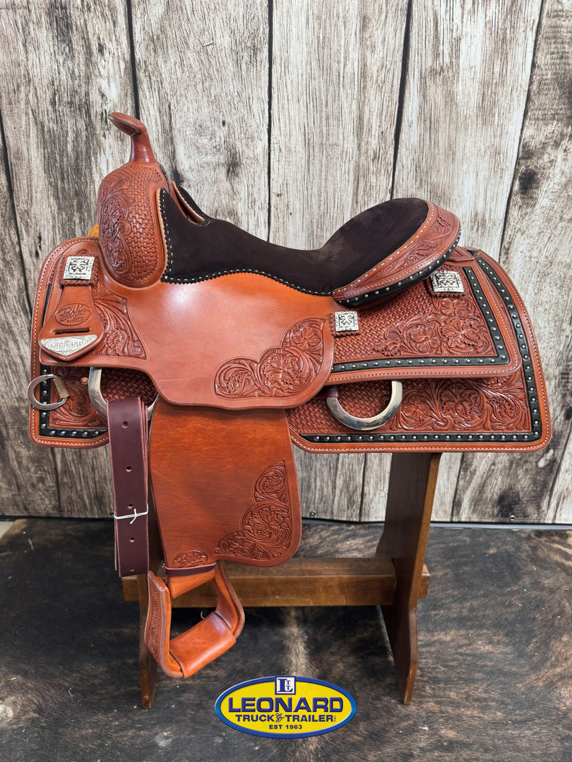 View Inventory: https://leonardtrailers.com/inventory/42802 Bob’s Custom Saddle, Cathy Brant Reining Saddle Built on a 16in D.L. Tree 15.5in Double Padded, California, Chocolate Rough Out Seat Since 1977, Bob’s Custom Saddles are built with the finest trees available; from hand-picked, top-grain hermann oak leather, real sheepskin, and hand-engraved sterling silver or silver overlay. Bob’s hand-tool every saddle, hand-lay every ground seat, hand-stitch every seat, and hand-craft each cantle. Their superior quality, craftsmanship, and performance are a prime choice for premier horsemen around the world. Proudly presented by Leonard Truck & Trailer. **We believe that these specifications to be accurate. Any discrepancies are unintentional. Please verify information with a sales associate prior to purchase.** Stock Number:42802