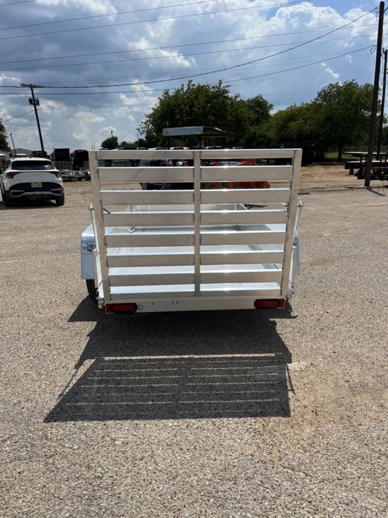 2000# Rubber torsion axle - No brakes - Easy lube hubsST175/80R13 LRC Radial tires (1360# cap/tire)13” Steel wheels, 5-4.5 BHP12” Solid side kitAluminum fendersExtruded aluminum floor6” Front retaining bumperA-Framed aluminum tongue, 48” long with 2” coupler4) Stake pockets (2 per side)4) Tie down loops (2 per side)Swivel tongue jack, 1200# capacityLED Lighting package, safety chainsAluminum tailgate - 50.25” x 39” longOverall width = 75.5”Overall length = 145”5 Year WarrantyThe Advertised Prices DO NOT Include: *Licensing* & TaxWe have over 200 trailers to choose from. Come in and see us at:6610 N I-35 Lacy Lakeview, TX 76705 (Exit 342B)Not in the great state of Texas? No Problem! We offer local and nationwide delivery.Store Hours:MON–FRI: 8:00 AM - 5:00 PMSATURDAY: 9:00 AM - 2:00 PMSUNDAY: ClosedRemember we handle all your Trailer Sales & Trailer Part Needs!!!Let us help you with servicing your trailer too!It is our pleasure to serve our community of Waco and all of Central Texas!