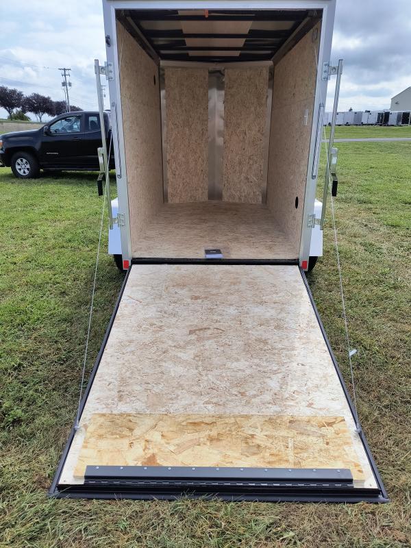 Frame : 3” x 2” Steel Tube Crossmembers : Formed Steel, 24” On-Center Tongue : 3” x 2” Steel Tube Coupler : 2” A-Frame Safety Chains : DOT Compliant Tongue Jack : 2K Coupler Mounted Wall Studs : Steel Tube, 24” On-Center Roof Bows : Steel Tube, 24” On-Center Front Profile : V-Nose Ramp(s) : 1500 lb. with Assist Vents : Sidewall Airflow Fenders : Smooth Aluminum Axle : 3500 lb. Drop Spring Idler Hubs : Easy Lube Tires : ST205/75R15C 6-PR Wheels : 15”, 5-Hole Steel Exterior Finish : .030” Aluminum Undercoating : Automotive Exterior Fastening : Color Matching Screws # Why Carr’s? We know you have choices when shopping for a trailer. Here are just a few reasons why Carr’s Trailers and Supplies is the best in the business: * Unbeatable Selection - with one of the largest trailer inventories in the Northeast, Carr’s is sure to have what you need in stock. We have cargo trailers, utility trailers, dump trailers, enclosed trailers, snowmobile trailers, ATV trailers, car haulers, tow dollies and tent campers by the 100’s * Honest Pricing - the price you see on the internet is the price you get in the store. With our buying power, we’re able to offer unmatched pricing on name brands such as Wells Cargo, Legend, Sure-Trac, Holmes, Mission and many others * Expert Advice - With over 20 years in the trailer business our team of experts will help you find the perfect trailer for your needs. We view ourselves as ”consultants” rather than ”salespeople” * One Stop Shop - We are a registered PennDOT agent for PA. That means we can do all the necessary paperwork for your trailer right at our counter. Many other places can’t do this so they send you somewhere else to get the paperwork done before you can even leave with your trailer! Not at Carr’s. You’ll be a fully legal towing machine when you leave our lot. (This process is quick too. Many times you can be in and out of the store in 30 minutes or less) * Post-Sale Support - So you bought a trailer. now what? At most places, you’d be on your own once the sales transaction is complete. Not at Carr’s! Our knowledgeable technicians will make sure that your vehicle is properly set up for safe towing before you leave the lot. Got a towing question? They’ll be glad to answer any you may have * Customizations - Need to haul a motorcycle in your trailer? Need e-track on the walls to secure your cargo? Need an extra dome light...or three? No problem! Our service department is able to add many options and perform many customizations. Most of them while you wait * Custom Trailers - Need something totally unique? Carr’s can work with you to have any trailer custom built. With our buying power, we can often get a custom trailer faster and for less money than other dealers * Parts and Accessories - We have a large showroom with 1000’s of parts and accessories in stock. We have a large assortment of repair parts for small single axle trailers all the way up to large tri-axles. Exterior Trim : 1.5” Bottom Extrusion Exterior Trim : 1.5” Top Extrusion Exterior Trim : Color Matching Rear Hoop Stone Guard : 16” ATP Roof : Flat Top Seamless Aluminum Interior Walls : Engineered Wood Interior Trim : Vinyl Wall Transitions Ceiling : Lauan Strip Flooring : 3/4” Engineered Wood Interior Lights : (1) LED Switches : (1) Dome Light, 12V Connector Plug : Flat 4-pin Exterior Lights : Full LED, DOT Compliant