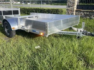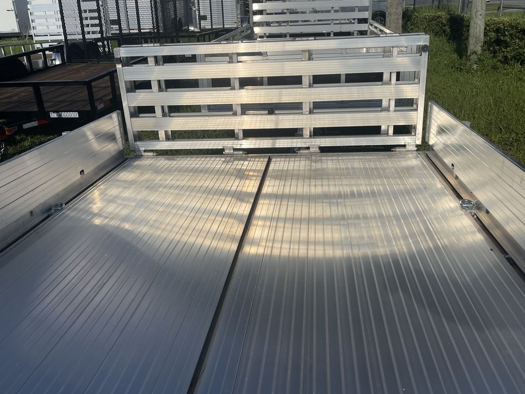 6X10 CARGO PRO FLEX HAUL ALUMINUM TRAILERLED LIGHTSTORSION AXLEBI-FOLD GATESPARE TIRE MOUNTSOLID FRONT / FENCE STLYE SIDING2” BALL COUPLERALUMINUM WHEELSRADIAL TIRES 205/75 R14ALUMINUM DECK