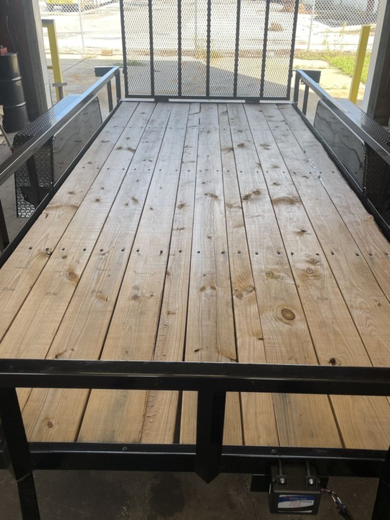 DOWN 2 EARTH 6.5X16 UTILITY TRAILERLED LIGHTS2 5/16” BALL COUPLERREAR GATE2-3.5K AXLES W/ELECTRIC BRAKESBLACK POWDER COATED