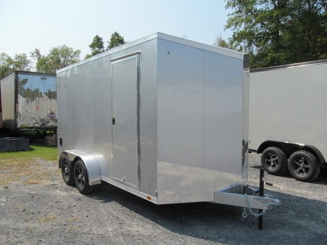 ATC STO 400 7 X 14 + 2 Cargo 7’ Tall All Aluminum Construction 16” O/C Floor, Wall and Roof Members Slanted V Front Profile Rear Ramp Side Door 15” Tires Aluminum Wheels Torsion Suspension Electric Brakes