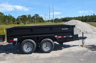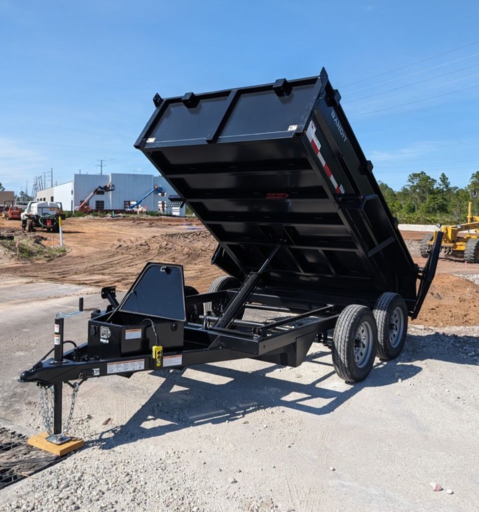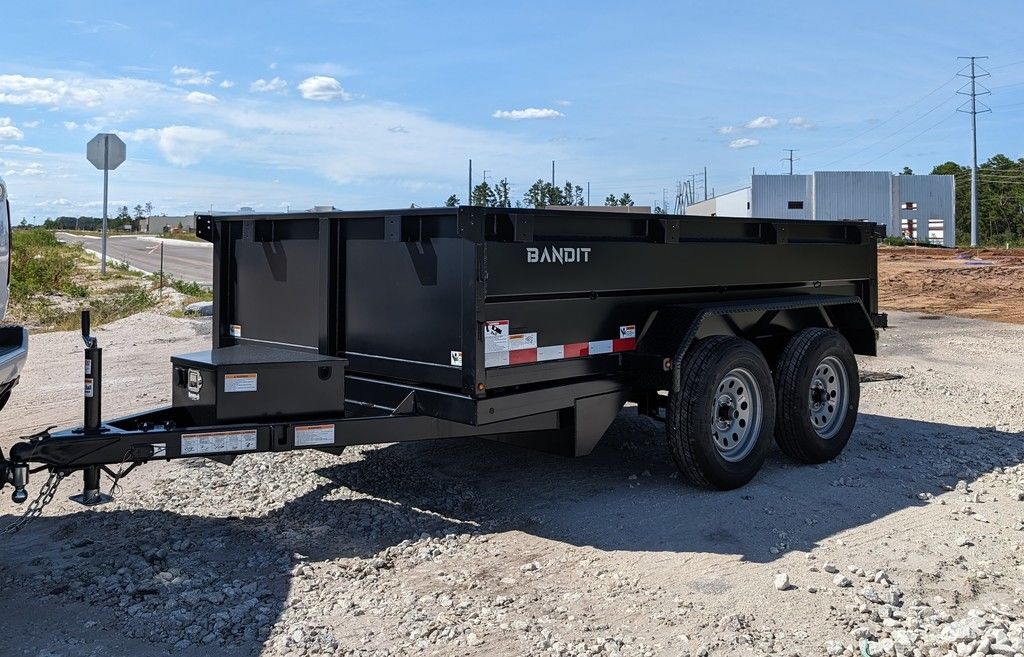 BANDIT DUMP TRAILER 18 AMP BATTERY CHARGER LED LIGHTS BLACK POWDER COATED SINGLE RAM 2 5/16” BALL COUPLER REAR BARN DOOR GATE BRAKES ON BOTH AXLES