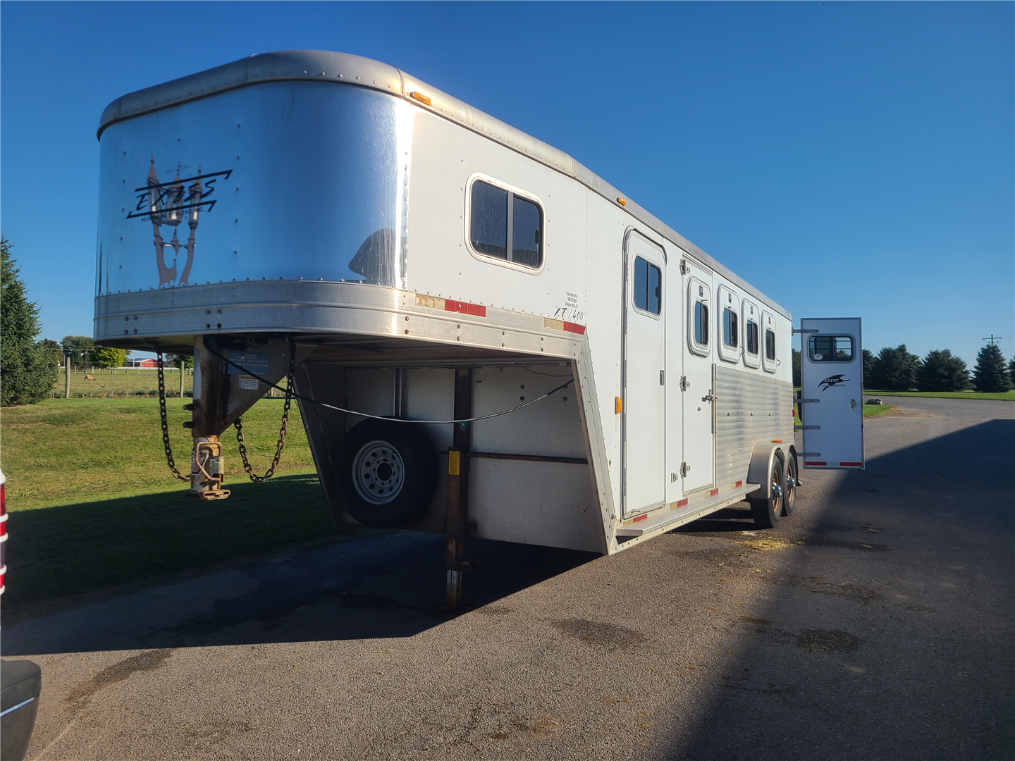 2003 Exiss 4 horse. Gooseneck has ac/heat and electric. Clean title. Good tires I love this trailer, it's easy to haul and in amazing shape. Only selling because I'm moving.
