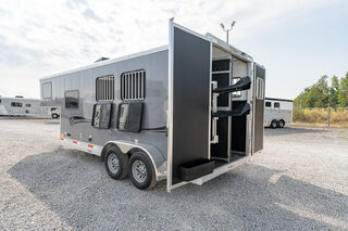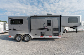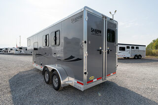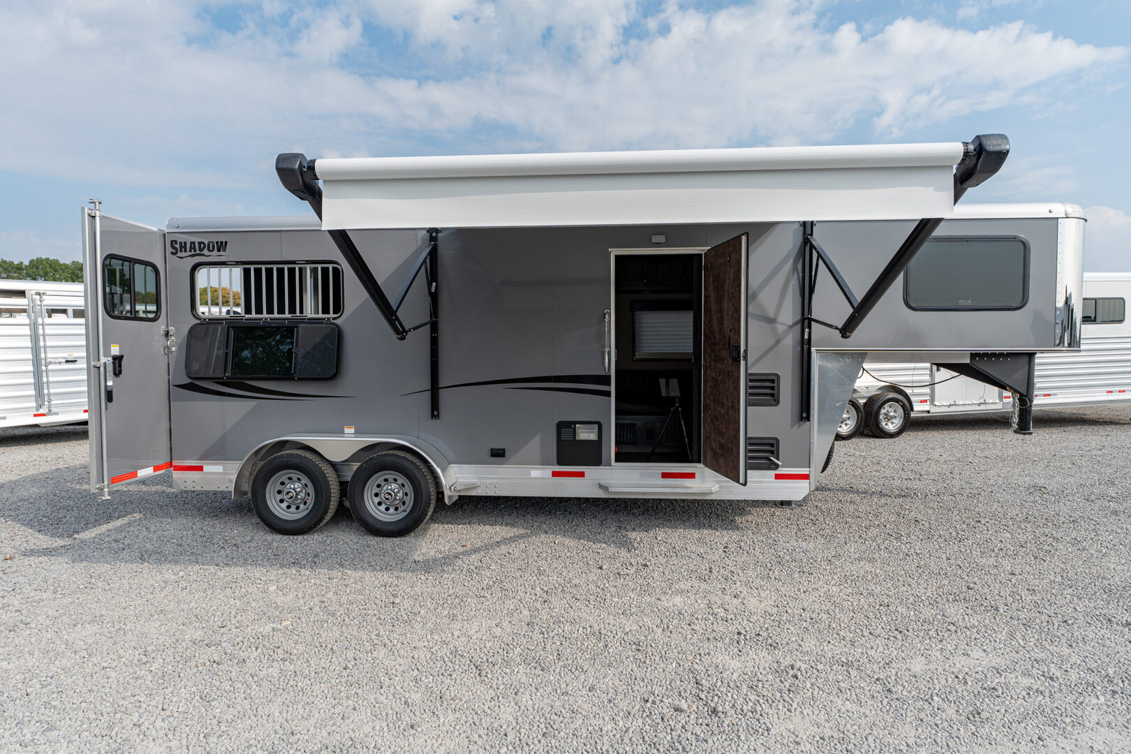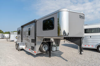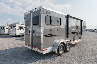 Stock# 43212 New 2026 Shadow 69180S-2SL-GN-LQ Gooseneck Horse Trailer with Living Quarters Shadow’s Pro Series models have been tested by time and hundreds of great horsemen and horsewomen alike. Among them include Hall of Famers like Austin Shepard, Jody Galyean, Randy Wilson, Tom Lyons, Kobie Wood, and clinician Pat Parelli who have all pulled the Pro Series Models well over a million miles over the years Model:69180S-2SL-GN-LQ Warranty: 6yr-Structural 2yr- Bumper to Bumper Trailer Specs:  7’ Getaway 18’ floor 26’ overall length (OAL) 6’ 9” OAL 7’ 6” tall Changes to Standard Trailer: 2 Horse GN, Slant Load, Slick Skin No escape door Rear tack 24 x 32 drop feed windows on streetside 19 x 53 slider window on curbside 50-50 rear doors with window in load door No load light Hydraulic jack – single leg Includes graphics Drive Train: 5200# spring leaf axles with ST225-75R x 15 tires Includes spare Living Quarters: 7’ short wall Weekender getaway Horse Area: 24 x 32 drop feed windows on streetside No escape door Sheeted sides and rear doors Aluminum stall gate with Rumber inserts Two tie rings per stall Dome light Lined lower walls 50-50 rear doors with window in load door No load light     We offer outstanding financing options, accept trades, and can arrange nationwide NO HASSLE delivery! Inquire today for more information! (888) 333-6613 **We believe these specifications to be accurate. Any discrepancies are unintentional. Please verify information with a sales associate prior to purchase.** Stock Number:43212