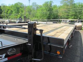 8.5’ Wide 22’ Flat + 5’ Beaver Tail Tandem Axle Tandem Dual 5’ Wood Filled Fold Over Ramps Standard Features 12” I Beam Main Frame 8” Side Rails 5” Channel Crossmembers 215/75R17.5 Tires Dual 2 Speed Jacks Lockable Tool Box in Tongue (4) 1” D-Rings Per Side Oak Deck
