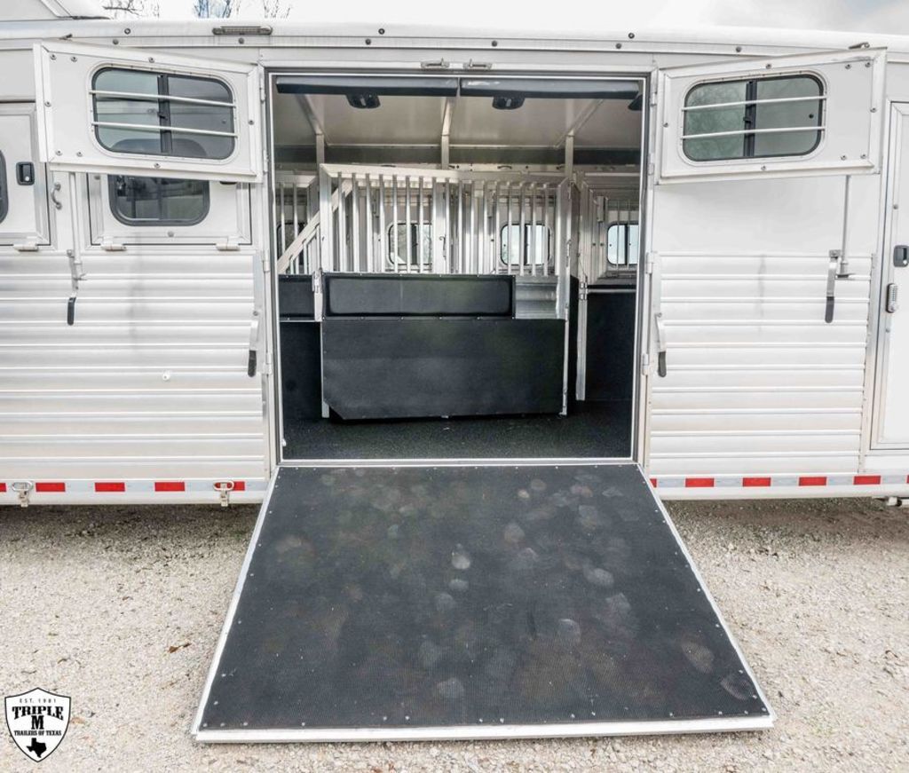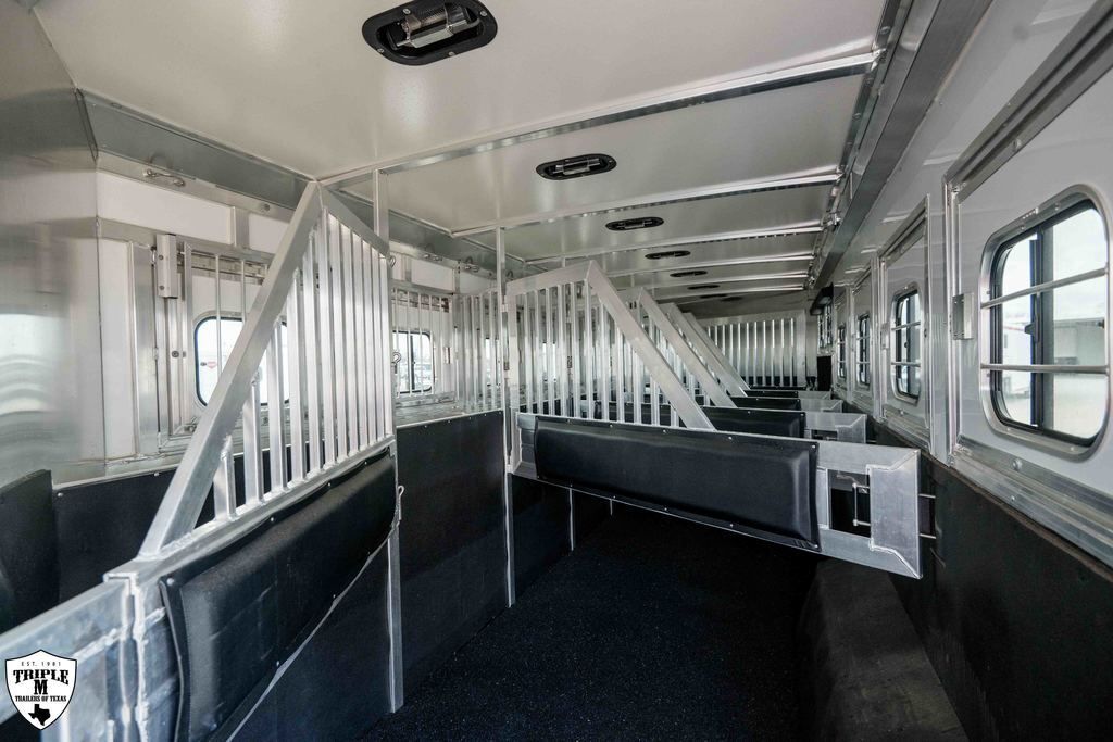 7H HART TRADITION SIDE LOAD 34’ FLOOR 41’ OVERALL 8’ WIDE 7’7 TALL GN RAISED 3” FOR 4X4 TRUCKS FULL REAR TACK w/ 8 SADDLE SEATS REAR SIDE LOAD SIDE RAMP ON 1 & 2 STALL w/ TAIL CURTAINS MANGERS BROOM CLOSET HYDRAULIC JACK STAINLESS NOSE 5’ SHORT WALL TACK ROOM (2) CAROUSEL RACK HAT BOX SHELF BOOT BOX FRAME FOR A/C ENCLOSED HAY POD w/ LADDER LED LIGHTS MUCH, MUCH MORE WHITE SKIN EMPTY = 10,250 GVWR = 25,000