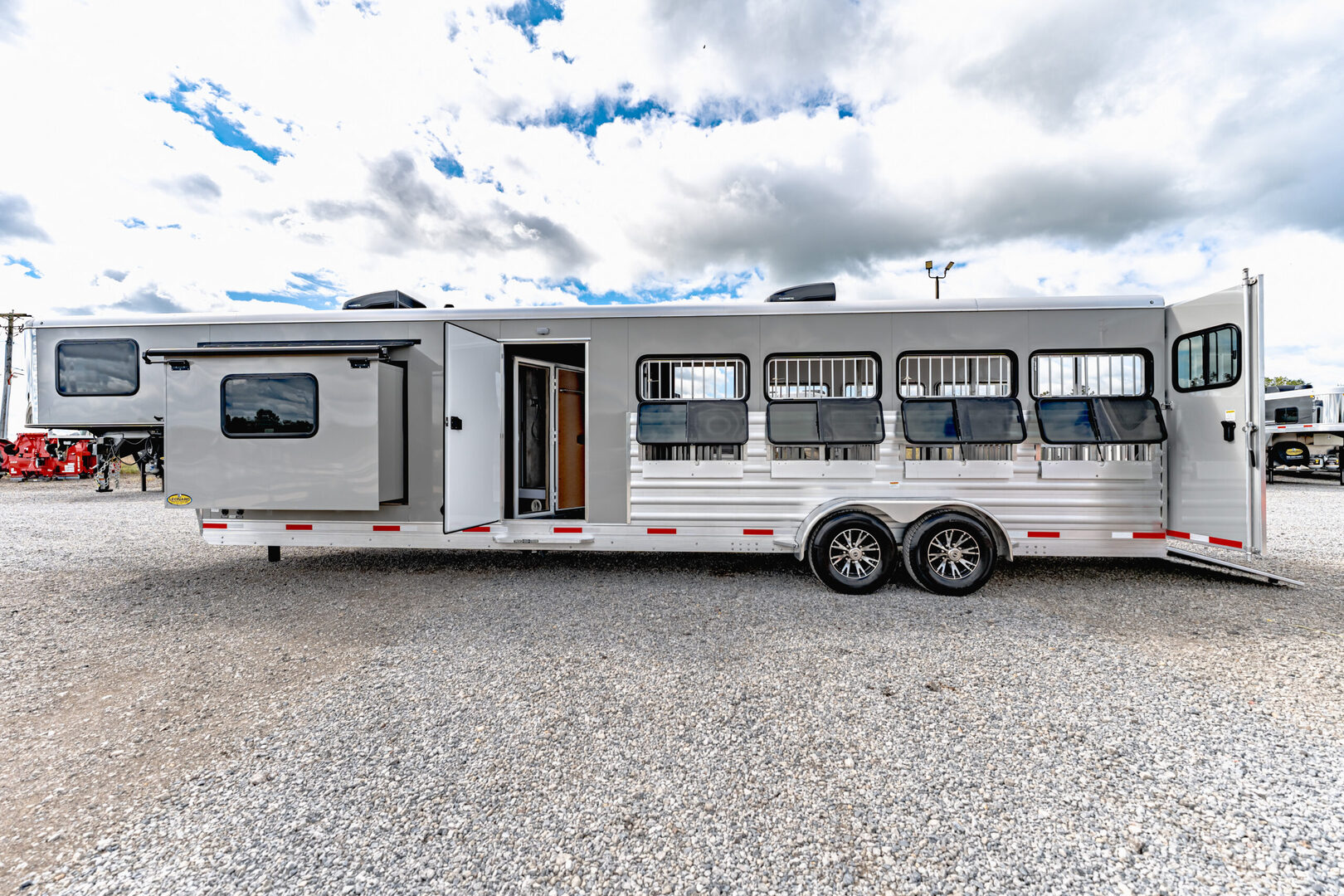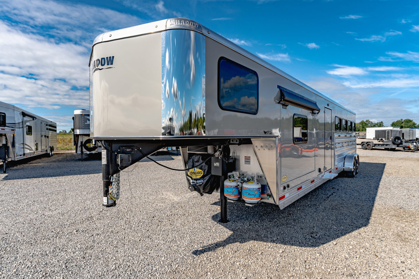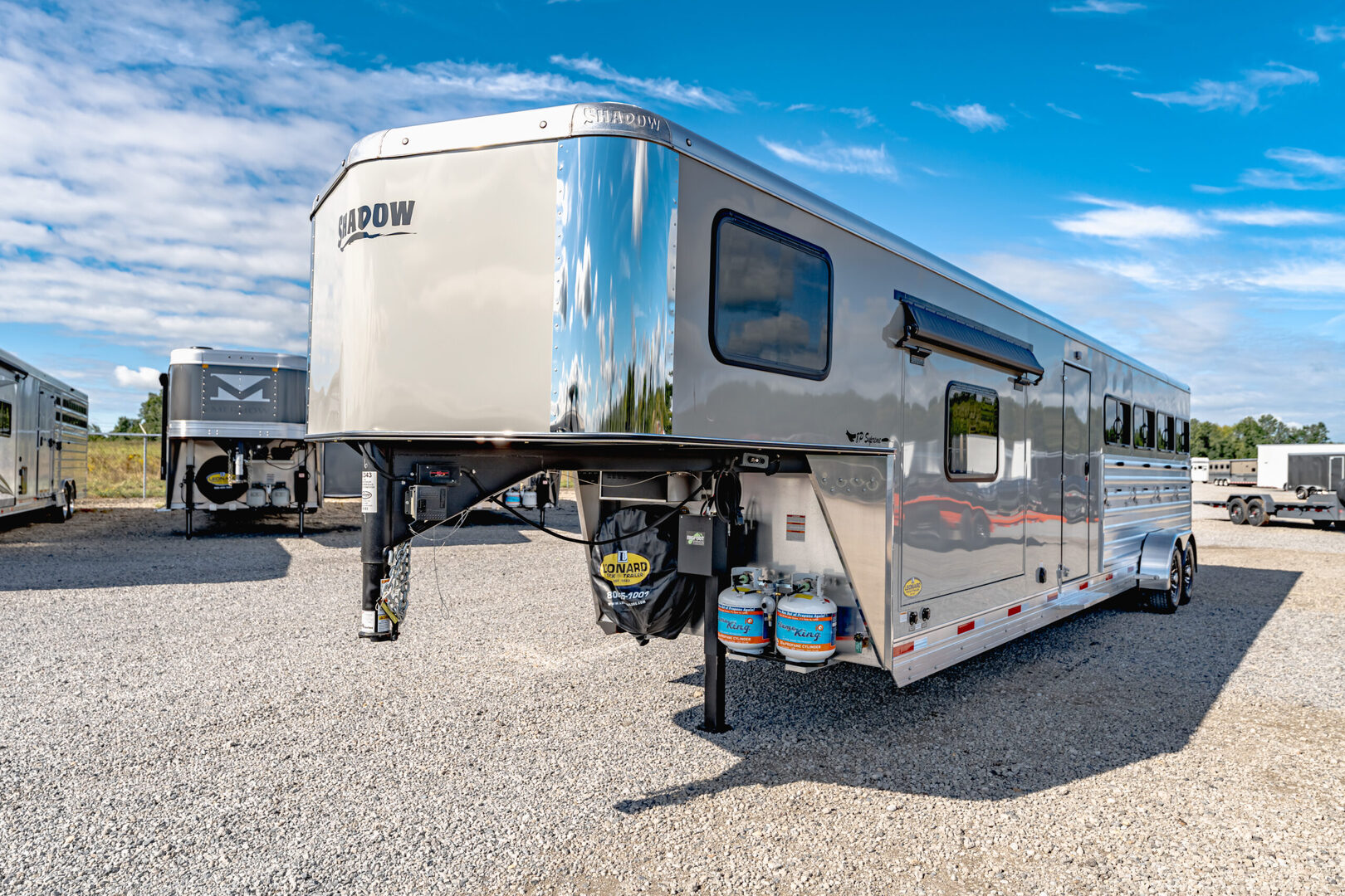 View Inventory: https://leonardtrailers.com/inventory/43343 Stock# 43343 New 2026 Shadow 69306E-8PEN-G-LQ Gooseneck  Livestock Trailer  If you are looking for a quality manufactured top-of-the-line living quarters horse trailer, look no further. Here at Shadow, we know what is important for the comfort of your stay. We have a variety of floor plans that range from 7’ to 25’ 6” short walls and range from 6’ 9” wide, and 8’ wide to meet your specific needs. Shadow’s interiors are assembled and installed right here in our Williston, Florida factory. From our handmade cabinets to our custom showers, you will feel right at home in your home away from home. Here are some features of Shadow that you will not find anywhere else. Model:69306E-8PEN-G-LQ Warranty: 6yr-Structural 2yr- Bumper to Bumper  Supreme 8 Pen Gooseneck 9’ LQ w/ 66” Mid Tack Changes to Standard Trailer 9’ LQ Supreme 8 Pen Gooseneck 30’6” Floor, 38’6” OAL 7’6” Tall, 6’9” Wide Hydraulic jack – single leg Drive Train 7000# spring leaf axles 16” aluminum wheels w/ ST235-80R x 16 load range ‘E’ radial tires Includes spare Mid Tack 66” straight wall 32” entry door C/S Horse area door Feeder bars on straight wall Stock Area 42” side ramp 8–48” 60/40 or 50/50 style pens Dome lights each side in stock area w/ LED strip lighting 50/50 rear doors Rear ramp Roof lining/insulation with roof vents Lower wall lining/insulation (1) 13.5 air conditioner Aluminum floor with WERM flooring (1) outlet in roof radius Exterior Silver sheeting Black graphics   We offer outstanding financing options, accept trades, and can arrange nationwide NO HASSLE delivery! Inquire today for more information! (888) 333-6613 **We believe these specifications to be accurate. Any discrepancies are unintentional. Please verify information with a sales associate prior to purchase.** Stock Number:43343