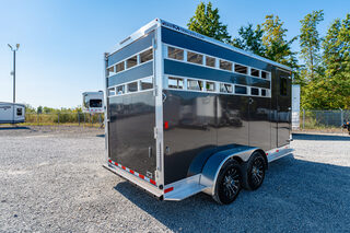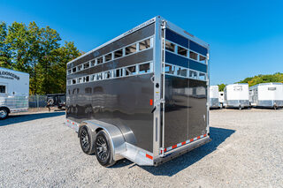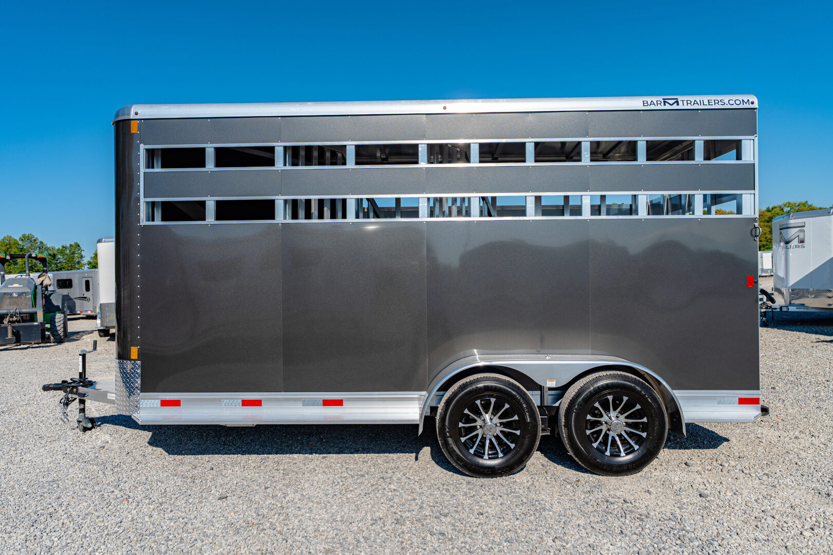 View Inventory: https://leonardtrailers.com/inventory/43377 Stock# 43377 New 2026 Bar-M SS-30-STK Bumper Pull Horse Trailer  At Bar-M Trailers, we value creativity, innovation, and durability. We believe in creating products that are not only good for the animals but also benefit the user. We are proud to be built in the USA! Model:SS-30-STK Warranty: 7yr-Structural Model Info Model: SS-30-STK Type: 3 Horse Slant with Stock Sides (Head and Butt) Standard Axles: 5,200# spring axles Tires: “E” range tires Standard Features Aluminum frame Aluminum side wall posts and aluminum roof bows Sidewall posts: 1 1/2” deep Typically spaced on 16” centers Unit height: 7’-6” tall Flooring cross members: 12” centers (commonly) 2x6 pressure-treated wood floor with rubber mats One-piece, seamless aluminum roof Exterior aluminum skin: .040 (white is standard) Nose sheets are riveted Dexter spring axles: 5,200# on 3-horse model Horse Area Interior Standards HDPE smooth black high-impact wall liner on road and curb side HDPE liner also on rear side of swing wall to dressing room (1) Slim-line LED stall light per stall (mounted in cove on curb side) Swinging partition between front horse stall and dressing room (2) Horse ties per stall (1) Horse divider between each stall Stall spacing: 42” between stalls Exterior Standards Fixed-mounted camper step at dressing room door Lockable entry door with window (curb side) Single swinging rear door with sheeted high and low air gaps Rear door: (4) hinges on curb side Single aluminum cam bar on road side Drip cap above dressing room door (aluminum angle) Optional Upgrades Running boards Charcoal skin upgrade from white skin Upgrade to aluminum wheels Upgrade the floor to Shelby flooring    We offer outstanding financing options, accept trades, and can arrange nationwide NO HASSLE delivery! Inquire today for more information! (888) 333-6613 **We believe these specifications to be accurate. Any discrepancies are unintentional. Please verify information with a sales associate prior to purchase.**< Stock Number:43377