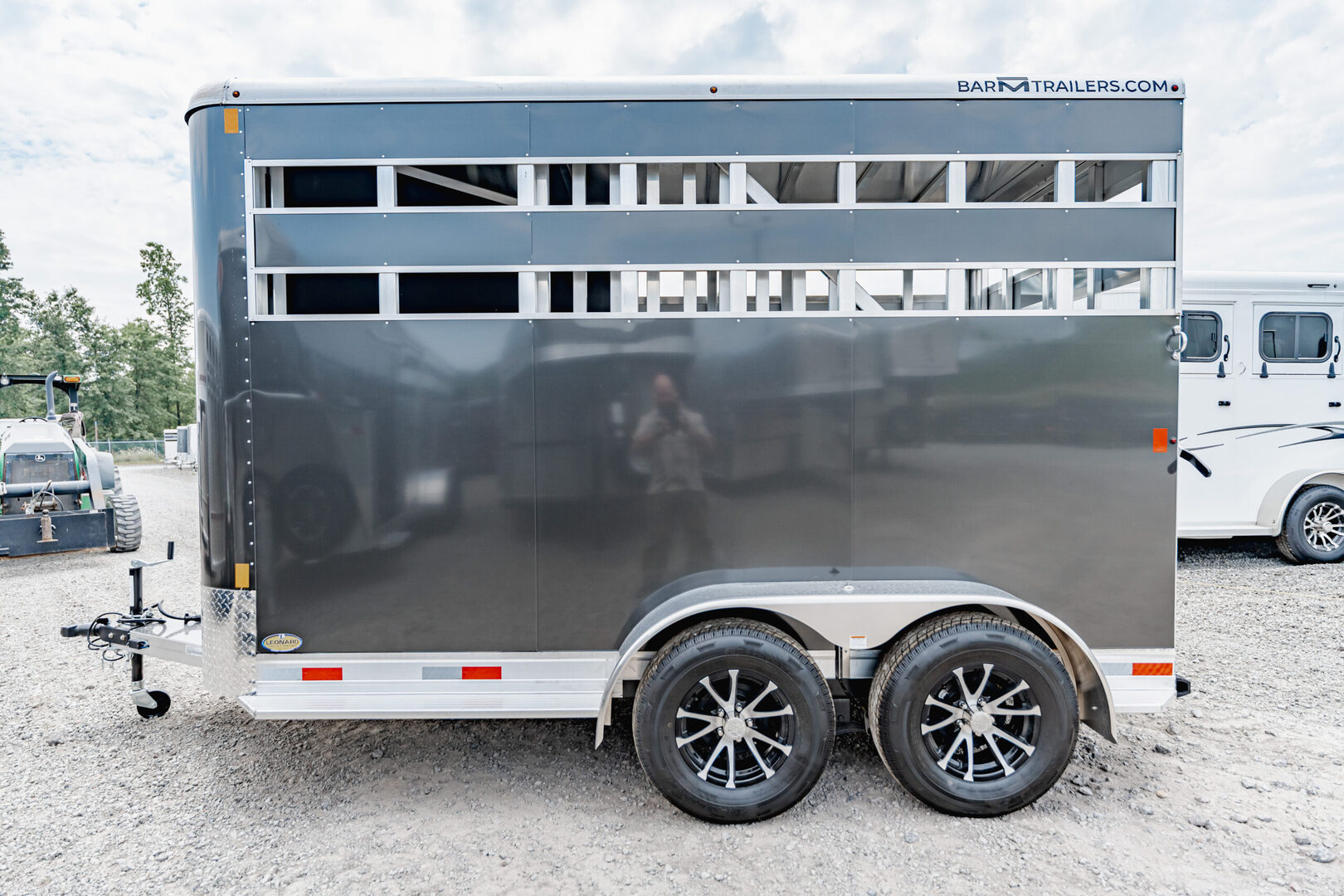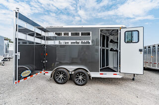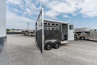 Stock# 43375 New 2025 Bar-M SS-20-STK Bumper Pull Trailer  At Bar-M Trailers, we value creativity, innovation, and durability. We believe in creating products that are not only good for the animals but also benefit the user. We are proud to be built in the USA! Model:SS-20-STK Warranty: 7yr-Structural Upgrades & Features Running boards Add a Bauer cam back lock box (price per box) Charcoal skin upgrade from white skin Extruded slat in horse area (3 horse) Upgrade to aluminum wheels  Upgrade the floor to Shelby flooring in lieu of pressure treated floor Standard Features Aluminum frame Aluminum side wall posts and aluminum roof bows. Sidewall posts are 1½” deep and typically on 16” centers Unit to be 7’6” tall Flooring cross members (commonly on 12” centers) 2x6 pressure treated wood floor with rubber mats One piece, seamless aluminum roof Exterior aluminum skin (.040, white is standard). Nose sheets are riveted Dexter spring axles (3,500 lb standard on 2 horse, 5,200 lb on 3 horse) Electric brakes on all axles (4) steel wheels and (1) steel wheel for spare (15” LR D) on 2 horse model (4) steel wheels and (1) steel wheel for spare (15” LR E) on 3 horse model Spare tire installed inside dressing room Heavy duty 2 5/16” coupler with safety chains   We offer outstanding financing options, accept trades, and can arrange nationwide NO HASSLE delivery! Inquire today for more information! (888) 333-6613 **We believe these specifications to be accurate. Any discrepancies are unintentional. Please verify information with a sales associate prior to purchase.** Stock Number:43375