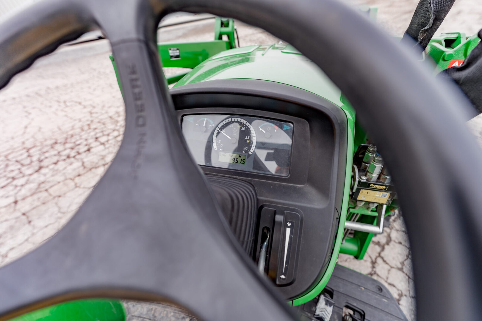 View Inventory: https://leonardtrailers.com/inventory/43400 Used 2015 John Deere 4052R Compact Utility Tractor Turbocharged diesel engine PowrReverser or eHydrostatic Transmission Options Cab or Open Station configurations Premium features: Hitch Assist, Aux Hitch Control, HST controls 943 hrs Key Specs: Engine power (gross):                                                 SAE J1995 rated power: 37.9 kW 50.8 hp 51.5 PS at 2600 rpm                                       Power take-off (PTO) power:                                   PowrReverser transmission: 30.5 kW 40.8 hp eHydro transmission: 29.2 kW 39.1 hp                                 Steering hydraulics:                                                   23.5 L/min 6.2 gpm                                                Implement hydraulics:                                                              42.3 L/min 11.2 gpm                                             Hitch type:                                                                        Category 1                                          Lift capacity, 24-in. behind link arms:                              1135 kg 2500 lb                                  Standard transmission; forward/reverse:      eHydro Transmission (eHST)                                     Cruise control  Standard                                              Approximate shipping weight (open-station; cab):   Open operator station (OOS) - 1710 kg 3770 lb Cab - 2120 kg 4675 lb                                  Wheelbase:                                                                     185.5 cm 73 in.