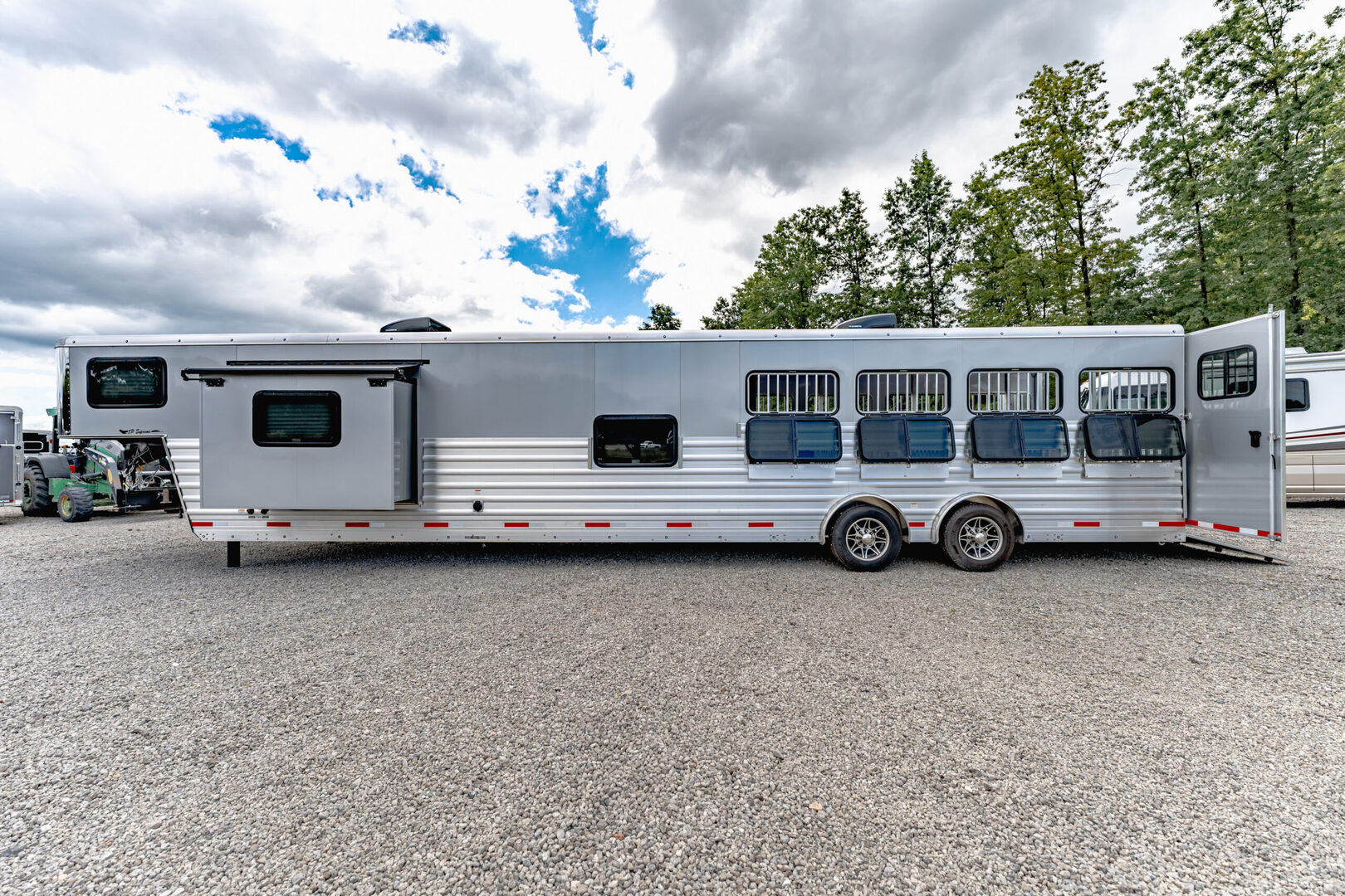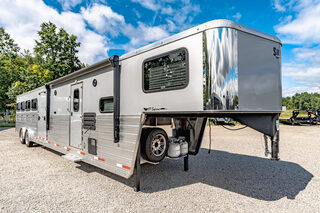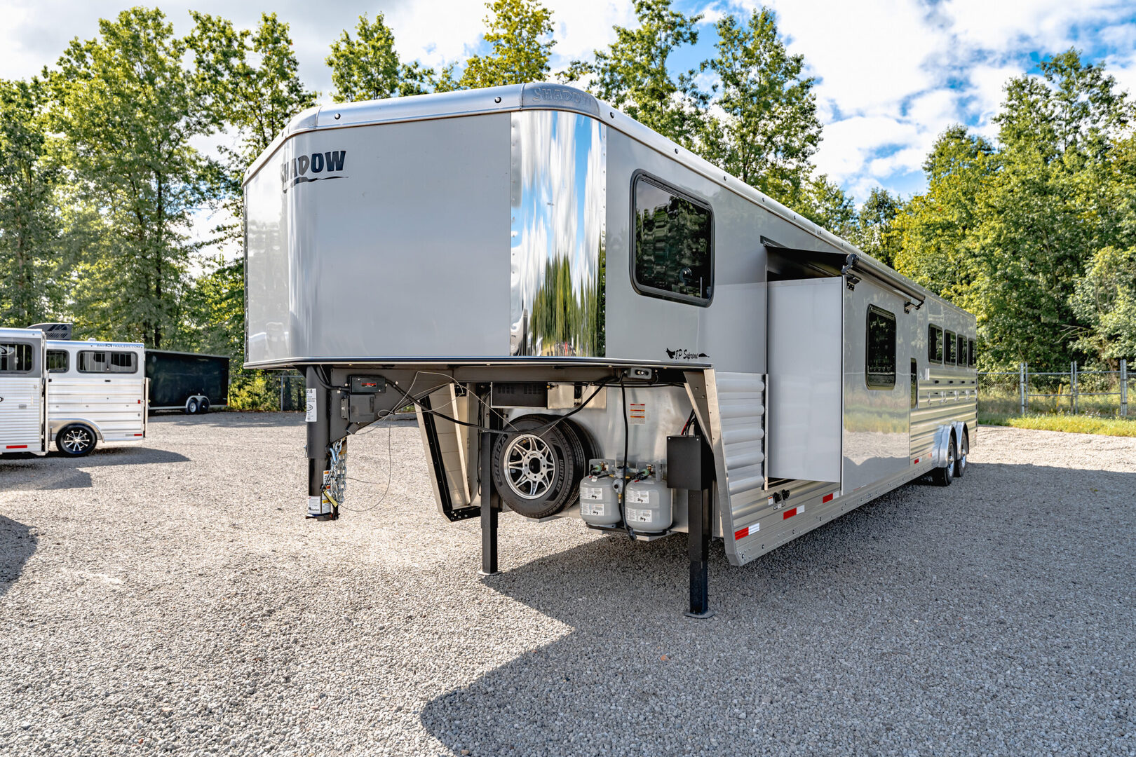 View Inventory: https://leonardtrailers.com/inventory/43418 Stock# 43418 New 2026 Shadow 803560E-8PEN-GN-D-10’6”LQ LQ Gooseneck  Livestock Trailer  If you are looking for a quality manufactured top-of-the-line living quarters horse trailer, look no further. Here at Shadow, we know what is important for the comfort of your stay. We have a variety of floor plans that range from 7’ to 25’ 6” short walls and range from 6’ 9” wide, and 8’ wide to meet your specific needs. Shadow’s interiors are assembled and installed right here in our Williston, Florida factory. From our handmade cabinets to our custom showers, you will feel right at home in your home away from home. Here are some features of Shadow that you will not find anywhere else. Model:803560E-8PEN-GN-D-10’6”LQ Warranty: 6yr-Structural 2yr- Bumper to Bumper  Supreme 8 Pen Gooseneck 10’6” LQ w/ 9’ Bunk mid tack Dimensions: 8’ wide 7’6” tall 35’6” floor length 43’6” overall length Features: Dual hydraulic jacks Drive train: Spread axle, 8000# torsion 17.5” aluminum wheels and tires Load range ’H’ radial tires Includes spare Pie shaped mid tack: 9’ long wall 48” full height side ramp 2 removable saddle rack mounts Bridle hooks 2 bunk beds with one 22”x36” egress window on bottom bunk Mid tack has ducted air flow Stock area: No side ramp 48” 60/40 or 50/50 style pens Dome lights each side in stock area with LED strip lighting 50/50 rear doors Rear ramp Roof lining/insulation with roof vents Lower wall lining/insulation One 13.5 air conditioner Aluminum floor with WERM flooring One outlet in roof radius Exterior: Silver sheeting Black graphics   We offer outstanding financing options, accept trades, and can arrange nationwide NO HASSLE delivery! Inquire today for more information! (888) 333-6613 **We believe these specifications to be accurate. Any discrepancies are unintentional. Please verify information with a sales associate prior to purchase.** Stock Number:43418