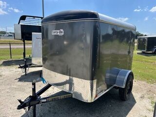 8 X 5 X 5 W/ rear door CARRY ON 8’ REAR DOOR SQUARE NOSE w/ ROUND TOP NO AIR VENT REAR DOOR 15” RADIAL TIRES CHARCOAL GVWR = 2,400 EMPTY = 890