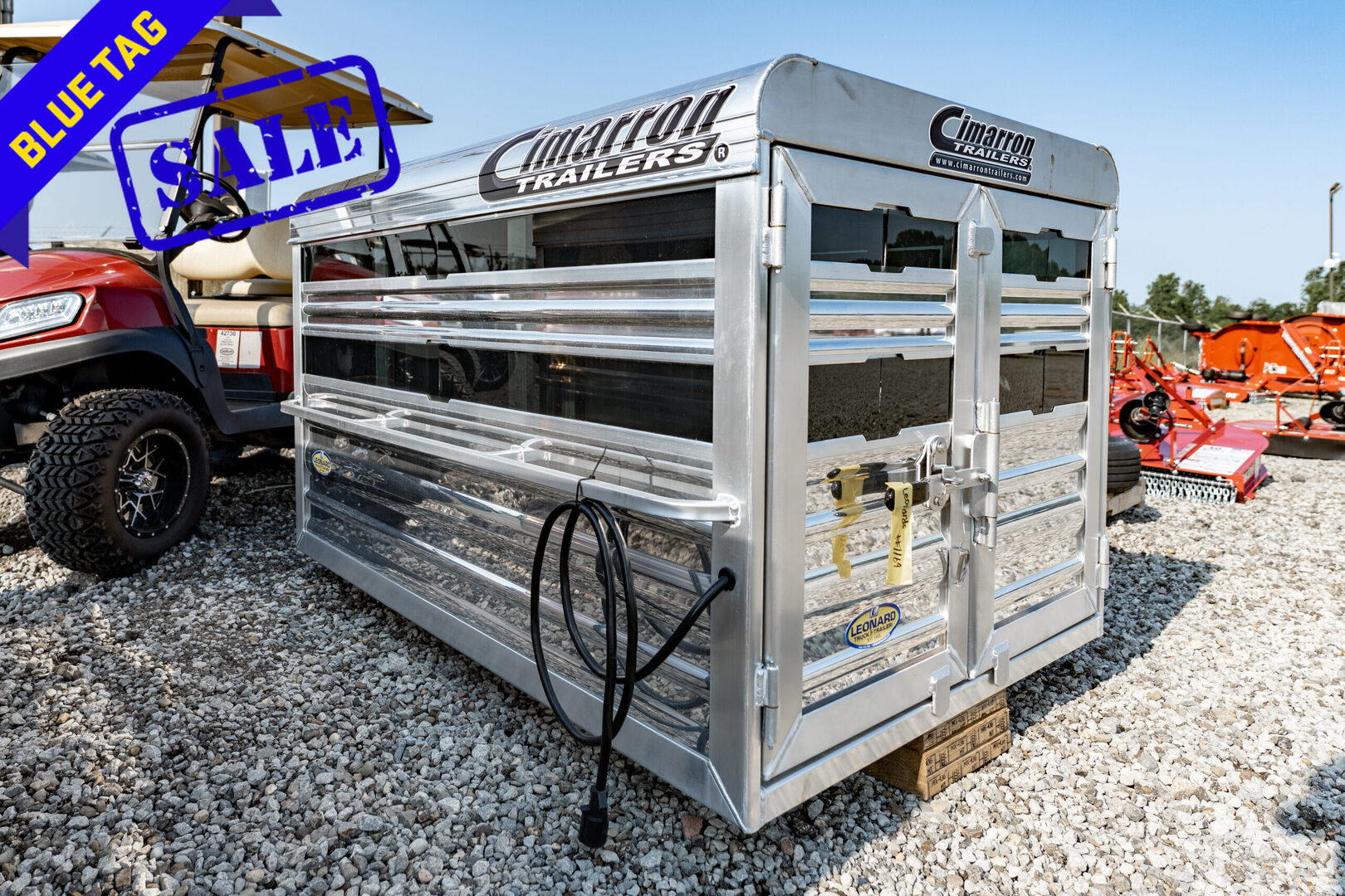 View Inventory: https://leonardtrailers.com/inventory/43504 Stock# 43504 New 2025 Cimarron 72” Stock Box The Cimarron Stock Box allows small animals to be safely transported in the bed of a standard pickup. Cool, comfortable, and secure, get your stock box today. Model:STOCK BOX-72” Warranty: 1yr-Sealants 3yr-Body and Hardware 8yr-Structural Details: Box Length: 72” (approx 76” with hardware) Air Spaces per Side: 1 Plexiglass Insert: Fold Down Slat each side, plexiglass at rear Pop-Up Roof Vents: 2 Polished Aluminum Slat & Top Rail: Yes 12 Volt Power Cord with 7-Prong Plug: Yes Dome Lights (L.E.D.): 1 Optibrite L.E.D. (must have power cord) 8” Awning L.E.D. Light at Rear: 1 (must have power cord) Button-Type Clearance Lights: None (must have power cord) Aluminum Treadplate Floor: Yes Sliding Window: 15” x 34” with bars in front wall Center Gate Style: One Gate across Box Width, Centered Standard Features: Width (inches): 48 Height (inches): 43 Roof Panel: Insulated with R-3 Thermal Value Rear Gates: Double Rear Gates with Butterfly Latch & Lockable Hasp Handles: Full-Length Handles each side, 2 Bumpers at Front Exterior Frame: Tubular with Radius Edges & Top Rail   We offer outstanding financing options, accept trades, and can arrange nationwide NO HASSLE delivery! Inquire today for more information! (888) 333-6613 **We believe these specifications to be accurate. Any discrepancies are unintentional. Please verify information with a sales associate prior to purchase.** Stock Number:43504