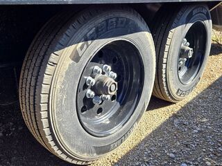 - 102? x 30’ GN H/D Single Wheel Flatbed- 2 – 8,000 lb. Lippert EZ Lube Brake Axles- 5’ Dovetail – MAXX-D Out Ramps- 2-5/16? - 25K GN Round Coupler- 2 – 10K - H/D Drop Leg Jacks- Slipper Spring Suspension- 3? Channel Cross Members On 16? Centers- 6? Channel Outer Frame- 12? x 14 lb. I Beam Neck and Riser- Full Width Tool Front Box - Double Door- Treated Wood Floor- Stake Pockets and Rub Rails- ST215 75 R 17.5? H Radial Tires and Wheels- Spare Tire Mount (Spare Not Included)- Flush Mount LED Lights- Empty Weight 6,685 lb.- G.V.W.R. 16,000 lb.- Carrying Capacity 9,315 lb.