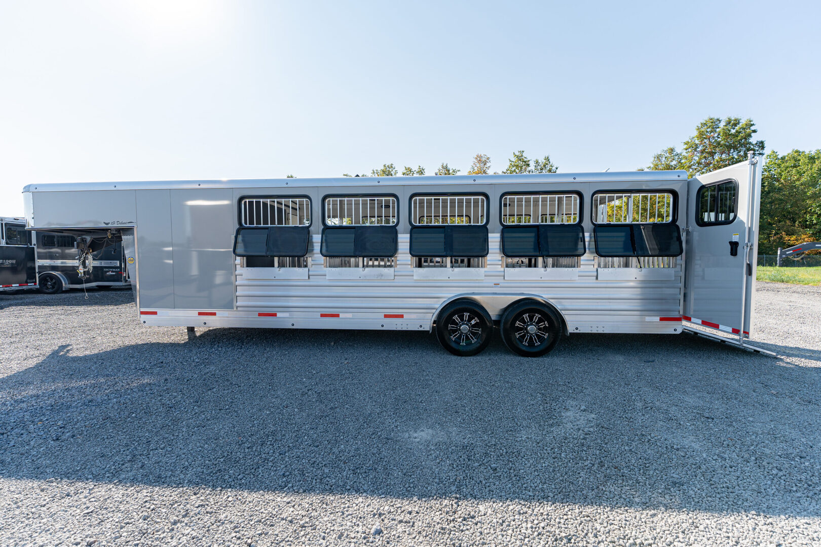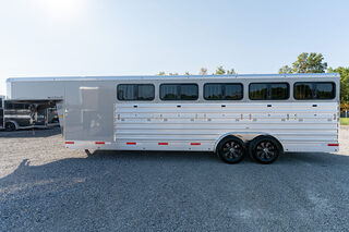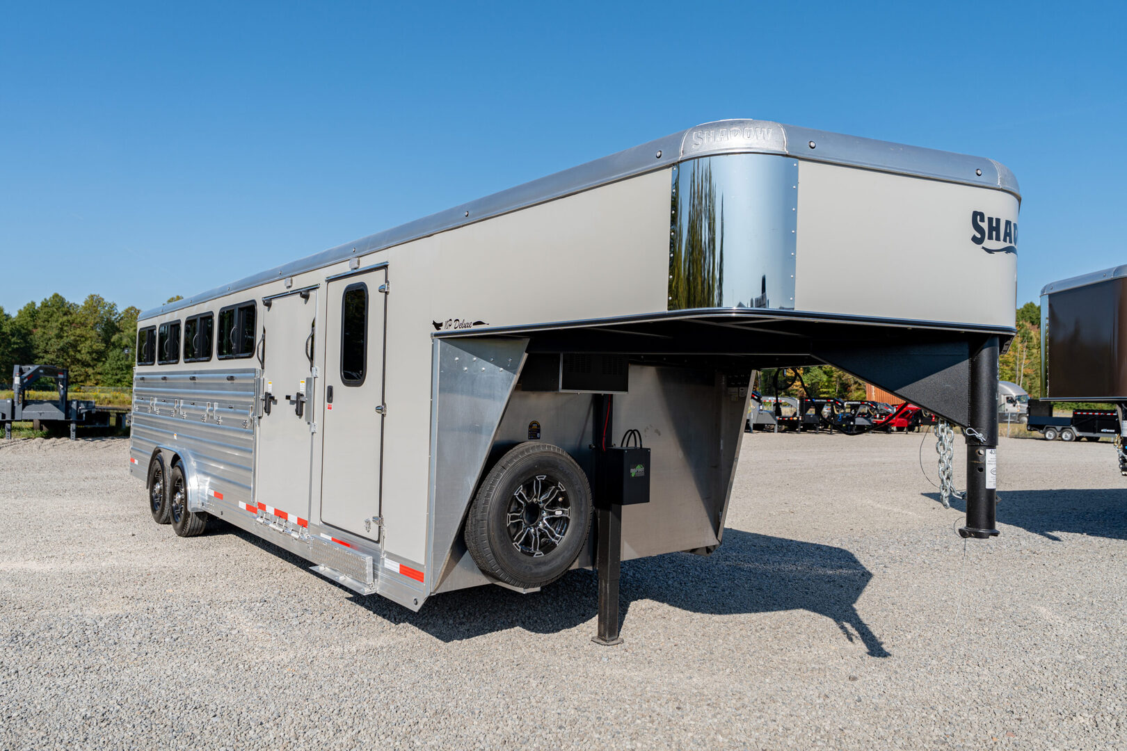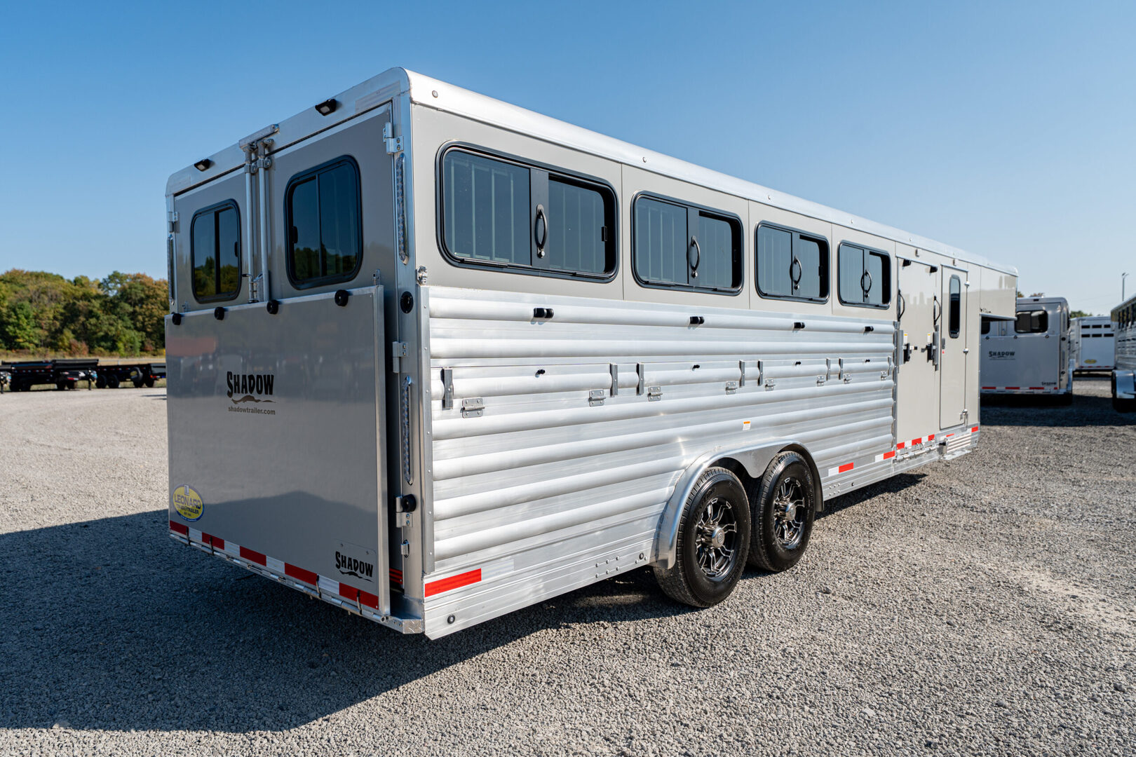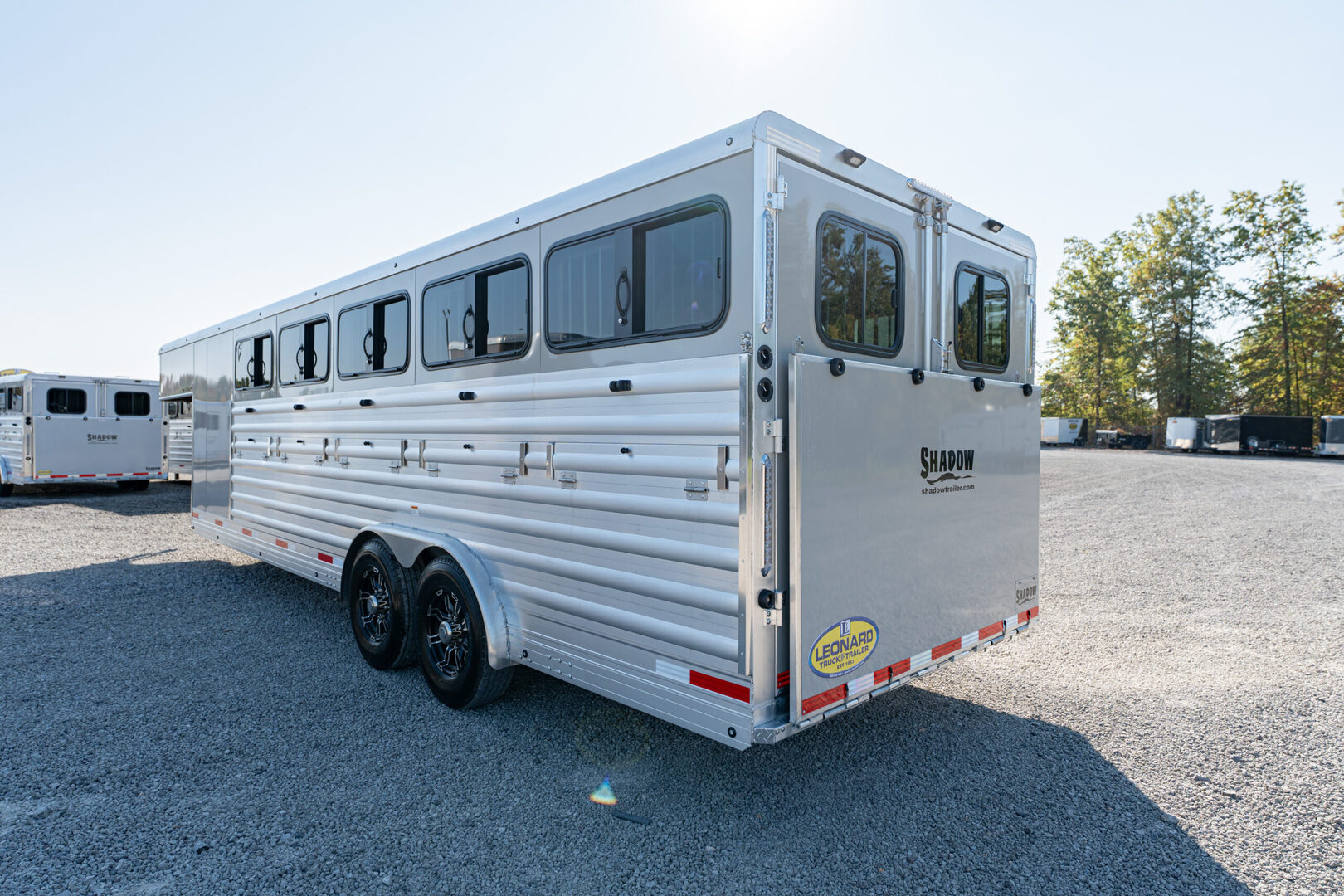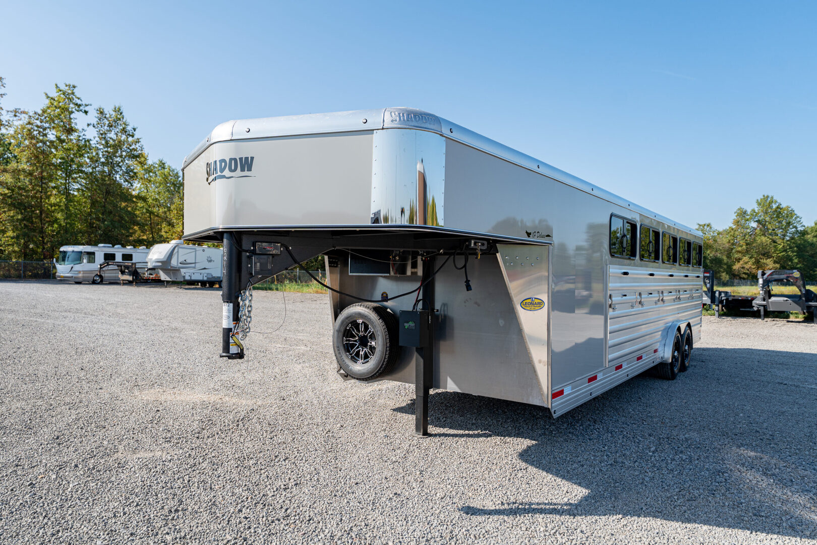 View Inventory: https://leonardtrailers.com/inventory/43612 Stock# 43612 New 2026 Shadow 80250S-8PEN-GN-D Gooseneck  Livestock Trailer  Shadow Stock Trailers are built tough for everyday use on the ranch. Shadow offers 8’ wide.  The spring axles give your stock a much better ride, getting your livestock and horses to their destination with less stress and fatigue. Model:80250S-8PEN-GN-D Warranty: 6yr-Structural 2yr- Bumper to Bumper  Pen Livestock 25’ Floor 32’ 6” OAL 8’ Wide 6’ 6” Tall Extruded Sides Aluminum Floor with Werm Flooring Single Hydraulic Jack Drive Train 8000# Torsion Axles, 16” Tires Includes spare Dress 60” Straight Wall 32” Entry Door with Window Walk Thru Door to Stock Area Feeder Bars on Straight Wall Stock Area 42” Side Ramp 40/60 or 50/50 Aluminum Pens Lined and Insulated Wall and Roof 50/50 Rear Doors with Ramp Roof Vents LED Interior Lights with Switch Load Light with Switch NO AC NO Awning NO ShurPower, 110 outlets, breaker, or battery     We offer outstanding financing options, accept trades, and can arrange nationwide NO HASSLE delivery! Inquire today for more information! (888) 333-6613 **We believe these specifications to be accurate. Any discrepancies are unintentional. Please verify information with a sales associate prior to purchase.** Stock Number:43612