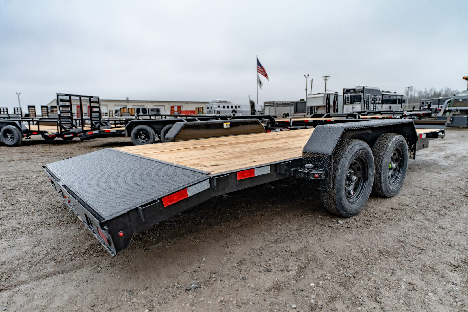 View Inventory: https://leonardtrailers.com/inventory/43626 Stock#43626  New 2025 H&H HCH8218-BP-070  Open Car Trailer  Welcome to reliability and versatility in transporting your goods โ€“ the H&H Car Hauler Trailer. For years, our flatbed trailer has been the backbone of the industry, trusted by professionals and enthusiasts alike to transport vehicles, equipment, and more. Model:HCH8218-BP-070 Warranty: 3yr: Limited Standard Features Per Trailer: Frame: 5” Steel Channel 3” Steel Channel Crossmembers 4” Steel Channel Tongue 2-5/16” A-Frame, Posi-Lock Coupler DOT Compliant Safety Chains 2K Set-Back Tongue Jack HD Tube Bulkhead 2’ Steel Tread Plate Dovetail 3” x 66” Steel Ladder Style Ramp (Slide-In with Carrier) Axles & Wheels: Double Break Tread Plate Fenders (2) 3500 lb. Spring Brake Axles Easy Lube Hubs Battery, Switch, and Lanyard Breakaway System ST205/75R15C 6-PR Tires 15”, 5-Hole Steel Wheels Industrial Grade Polymer Finish Exterior Decking & Storage: 2” Pressure Treated Pine Decking Board Retainers Stake Pockets for Tie Downs Spare Tire Carrier for Exterior Storage Electrical & Lighting: Round 7-pin Blade Connector Plug Sealed Wiring Harness Full LED, DOT Compliant Exterior Lights Limited 3-Year Warranty Selected Options Per Trailer: Color: Black Fender: Removable Treadplate 7-10K 5IN Frame   We offer outstanding financing options, accept trades, and can arrange nationwide NO HASSLE delivery! Inquire today for more information! (888) 333-6613 **We believe these specifications to be accurate. Any discrepancies are unintentional. Please verify information with a sales associate prior to purchase.** Stock Number:43626