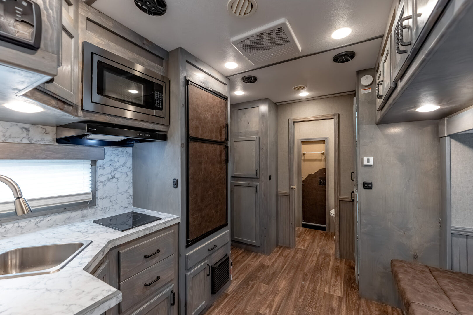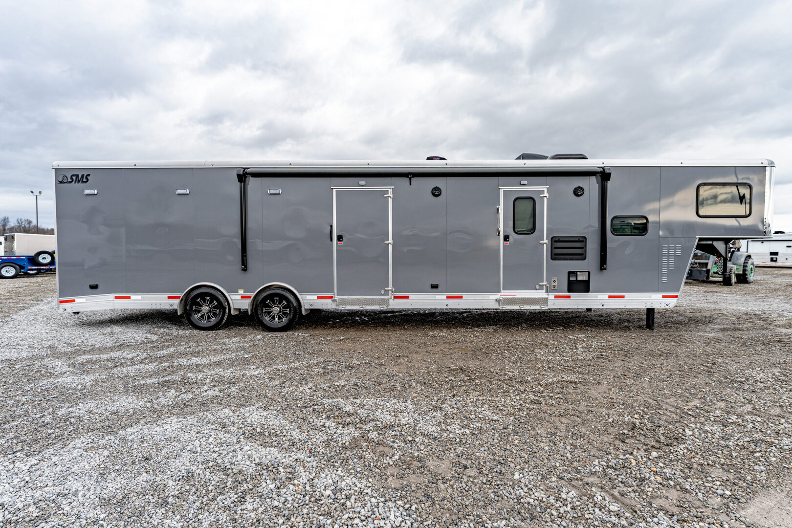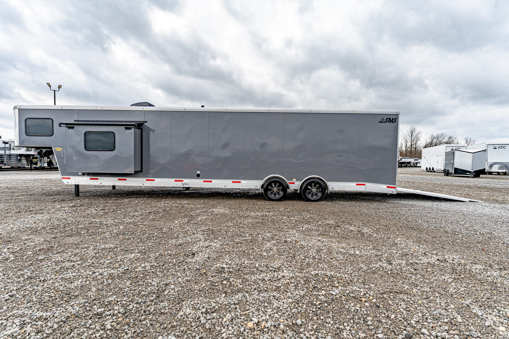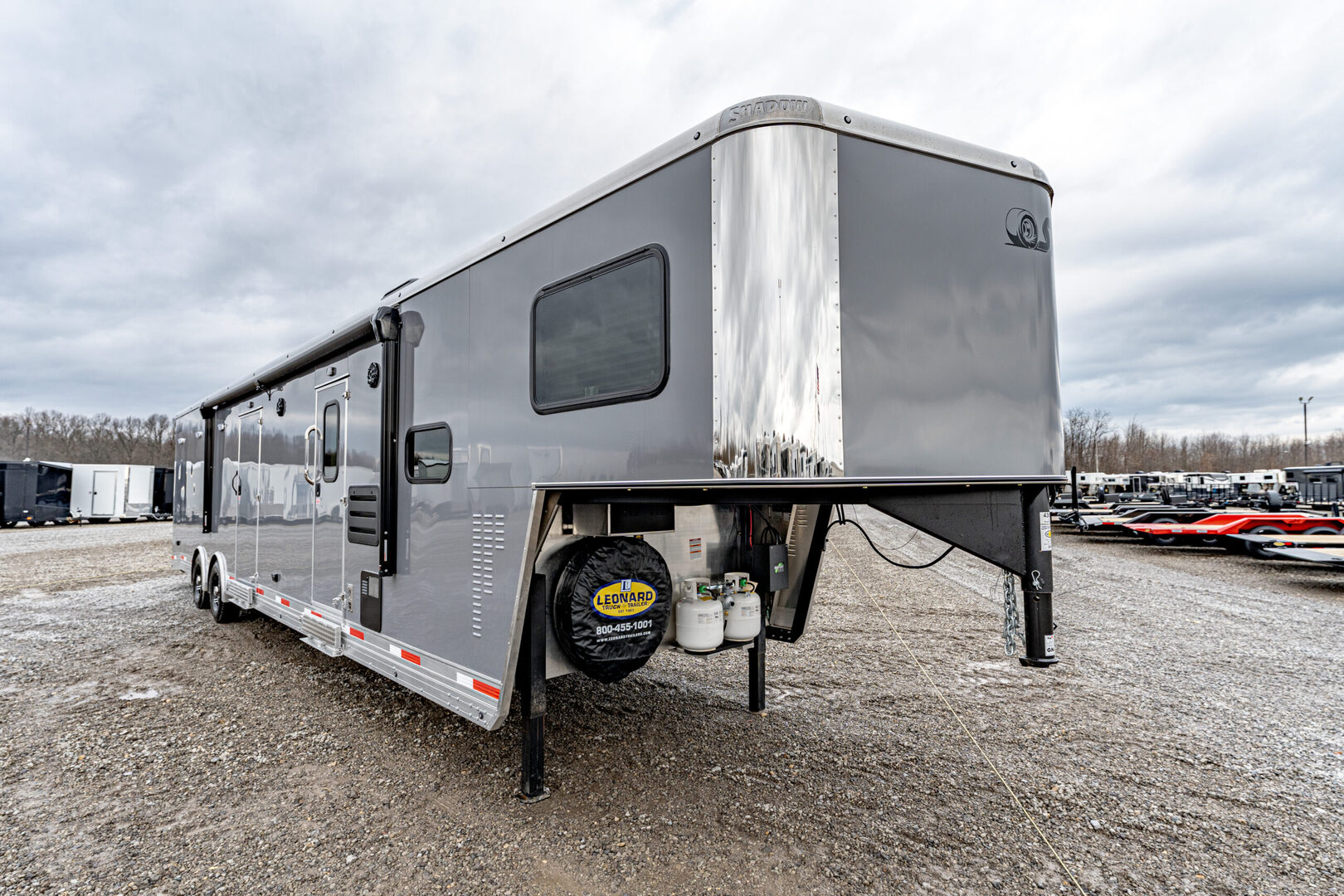 View Inventory: https://leonardtrailers.com/inventory/43650 Stock# 43650 New 2026 Shadow 85340-96-GN-2-8-14’LQ Gooseneck Toy Hauler Trailers With Living Quarters Model:85340-96-GN-2-8-14’LQ Warranty: 6yr-Structural 2yr- Bumper to Bumper  SMS Model: 85340-96-GN-2-8-14’LQ Dimensions: 34’ floor 42’ overall length (OAL) 8’5” wide 8’ tall Cargo Gooseneck, Living Quarter Slick skin, Hydraulic Jack - Dual Legs Drive Train: 8000# spread torsion axles, 16” wheels LT235-85R X 16 Load Range ’G’ radial tires Includes spare Cargo Area: 20’ garage Standard dove tail (3’x3’) Full-height rear ramp with spring assist 24” transition flap Diamond plate on rear ramp & transition flap Access door curbside in front Walls/ceiling lined and insulated with white aluminum sheeting 110V light package 2 manual vents in cargo area (front vent prewired for AC) Electric awning curbside Living Quarters: 14’ straight wall California king mattress 1 manual slide with fold-down sofa streetside Large shower Porcelain toilet 6.0 refrigerator Microwave Recessed 2 burner stove Stainless steel sinks Hot water heater Furnace Pocket door to bathroom 20” door to cargo Interior/porch light Air conditioner 15.5 with heat strip Exterior speakers   We offer outstanding financing options, accept trades, and can arrange nationwide NO HASSLE delivery! Inquire today for more information! (888) 333-6613 **We believe these specifications to be accurate. Any discrepancies are unintentional. Please verify information with a sales associate prior to purchase.** Stock Number:43650