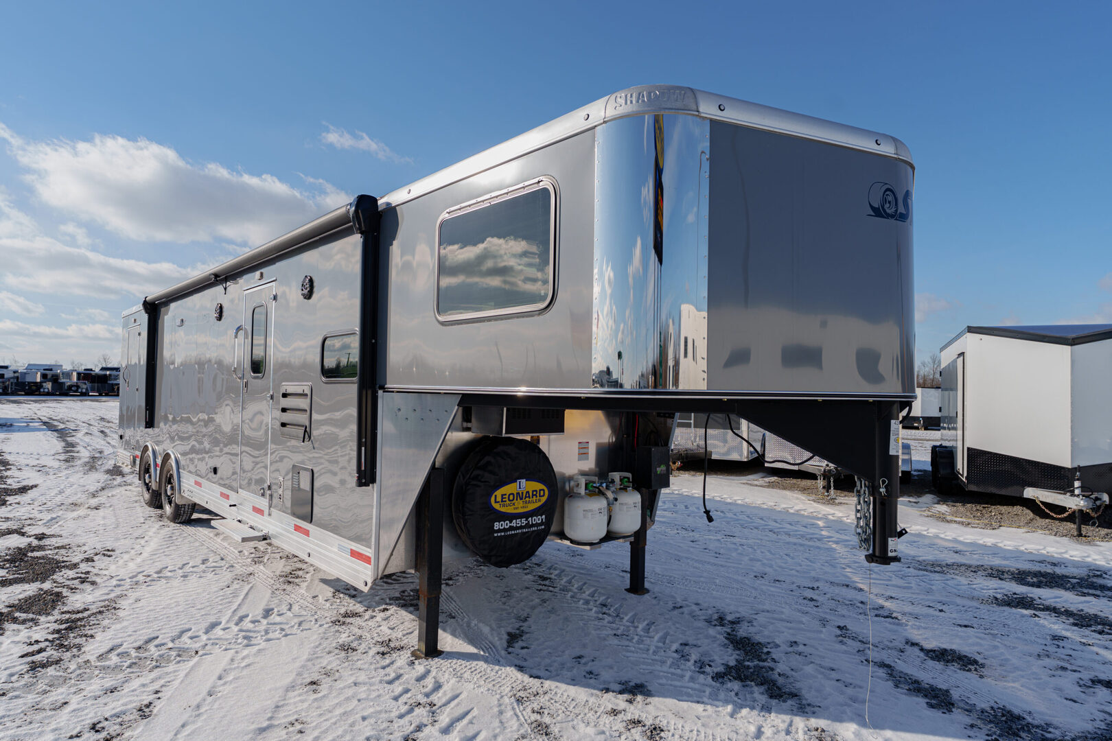 View Inventory: https://leonardtrailers.com/inventory/43651 Stock# 43651 New 2026 Shadow 85286-90-GN-2-7-12’6LQ Gooseneck Toy Hauler Trailers With Living Quarters Model:85286-90-GN-2-7-12’6LQ Warranty: 6yr-Structural 2yr- Bumper to Bumper    Domensions: Floor Length: 32’6” Overall Length (OAL): 40’6” Width: 8’5” Height: 7’6” General Features Cargo Gooseneck Living Quarter Slick Skin Hydraulic Jack-Dual Legs Drive Train Axles: 7000# Spread Torsion Axles Wheels: 16’ Wheels with ST235-80R X 16 Load Range ’E’ Radial Tires Includes Spare Cargo Area Size: 20’ Garage Tail: Standard Dove Tail (3’ x 3’) Rear Ramp: Full Height Rear Ramp with Spring Assist Transition Flap: 24” Reinforcement: Diamond Plate on Rear Ramp & Transition Flap Access Door: Curbside in Front Walls & Ceiling: Lined/Insulated with White Aluminum Sheeting Lighting: 110V Light Package Vents: 2 Manual Vents in Cargo Area (Front Vent Prewired for AC) Living Quarters Size: 12’6” Straight Wall Bed: California King Mattress Slide Mechanism: 1 Manual Slide with Fold-Down Sofa (Streetside) Bathroom: Large Shower, Porcelain Toilet Kitchen Features: 6.0 Refrigerator Microwave Recessed 2-Burner Stove Stainless Steel Sinks Hot Water Heater Furnace Doors: Pocket Door to Bathroom 20” Door to Cargo Additional Features Lighting: Interior/Porch Light Air Conditioning: 15.5 w/ Heat Strip Entertainment: Exterior Speakers   We offer outstanding financing options, accept trades, and can arrange nationwide NO HASSLE delivery! Inquire today for more information! (888) 333-6613 **We believe these specifications to be accurate. Any discrepancies are unintentional. Please verify information with a sales associate prior to purchase.** Stock Number:43651