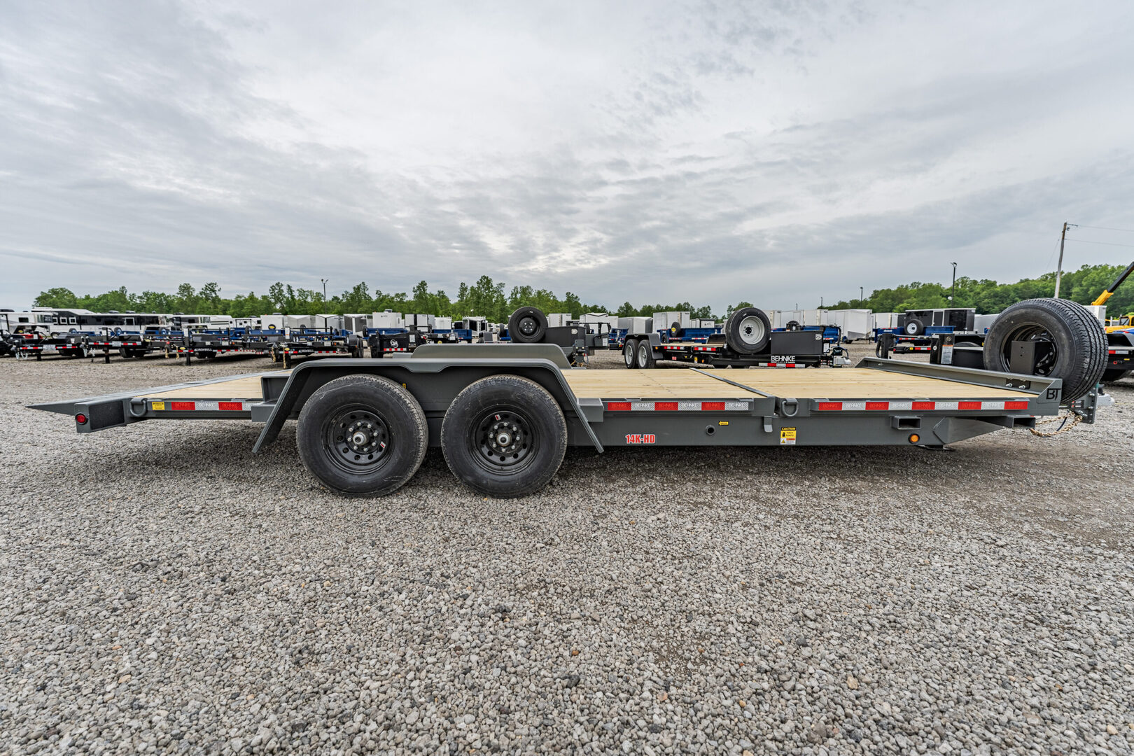 View Inventory: https://leonardtrailers.com/inventory/43760 Stock# 43760  New 2026 Behnke TBCT2214ET Equipment Trailer The full tilt features a single 5-7K axle with a 10-12’ tilt deck. Frame widths of 60-80”can be achieved between the fenders. These trailers are pull-type configurations with a cylinder, that pivots off of the tongue. Model:TBCT2214ET Warranty: 5yr-Pro-rated Trailer Details: Model: TBCT2214ET Axle: 7,000 lb. Torflex Tires: ST235-80R-16E Brakes: Electric Gross Vehicle Weight (GVW): 14,000 lbs. Hitch: 2 5/16” Pinstripe: Black Wheel Color: Black Color: Charger Gray Features & Specifications: 6’ stationary section 16’ tilt section Axles: (2) 7,000 lb. Torflex axles with electric brakes D-rings: (4) D-rings located at the rear corners of stationary and tilt sections Storage & Mounting: V-shaped tongue mount toolbox Spare tire mount Structural Components: Rub rail Fender guards 12” on-center crossmembers Flush floor Pallet fork holder Side hand valve Coupler: 2 5/16” Item Description: V-toolbox Rub rail Spare tire mount Fender guards   We offer outstanding financing options, accept trades, and can arrange nationwide NO HASSLE delivery! Inquire today for more information! (888) 333-6613 **We believe these specifications to be accurate. Any discrepancies are unintentional. Please verify information with a sales associate prior to purchase.** Stock Number:43760