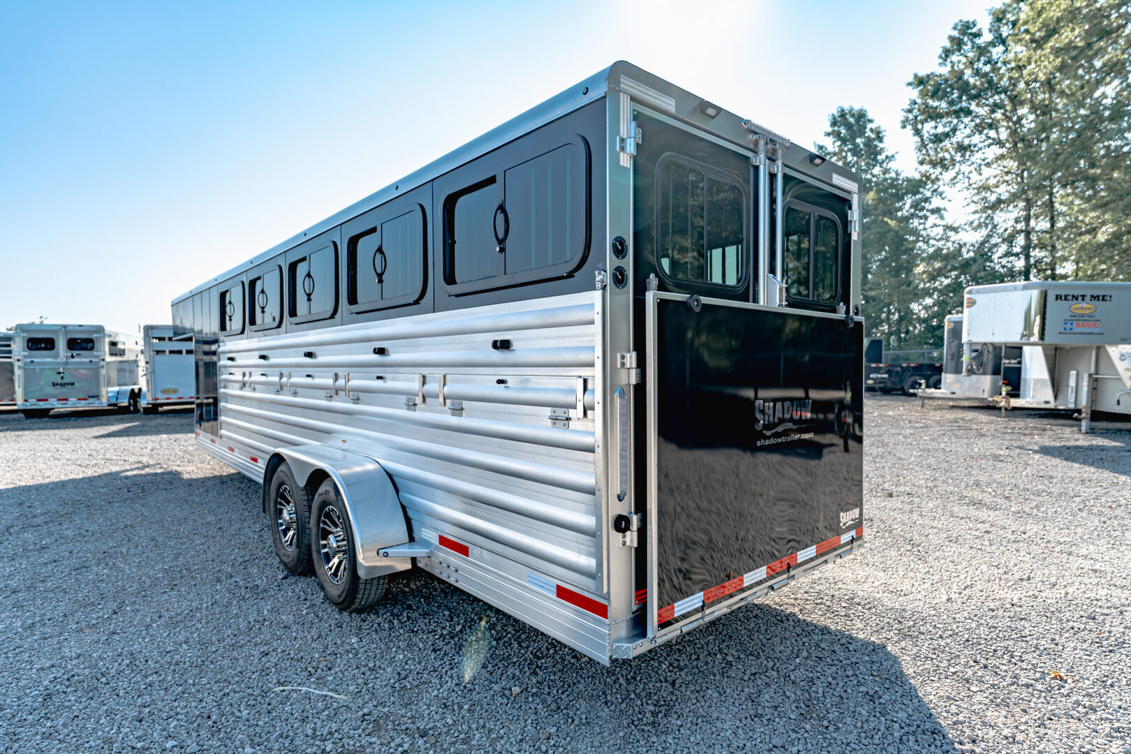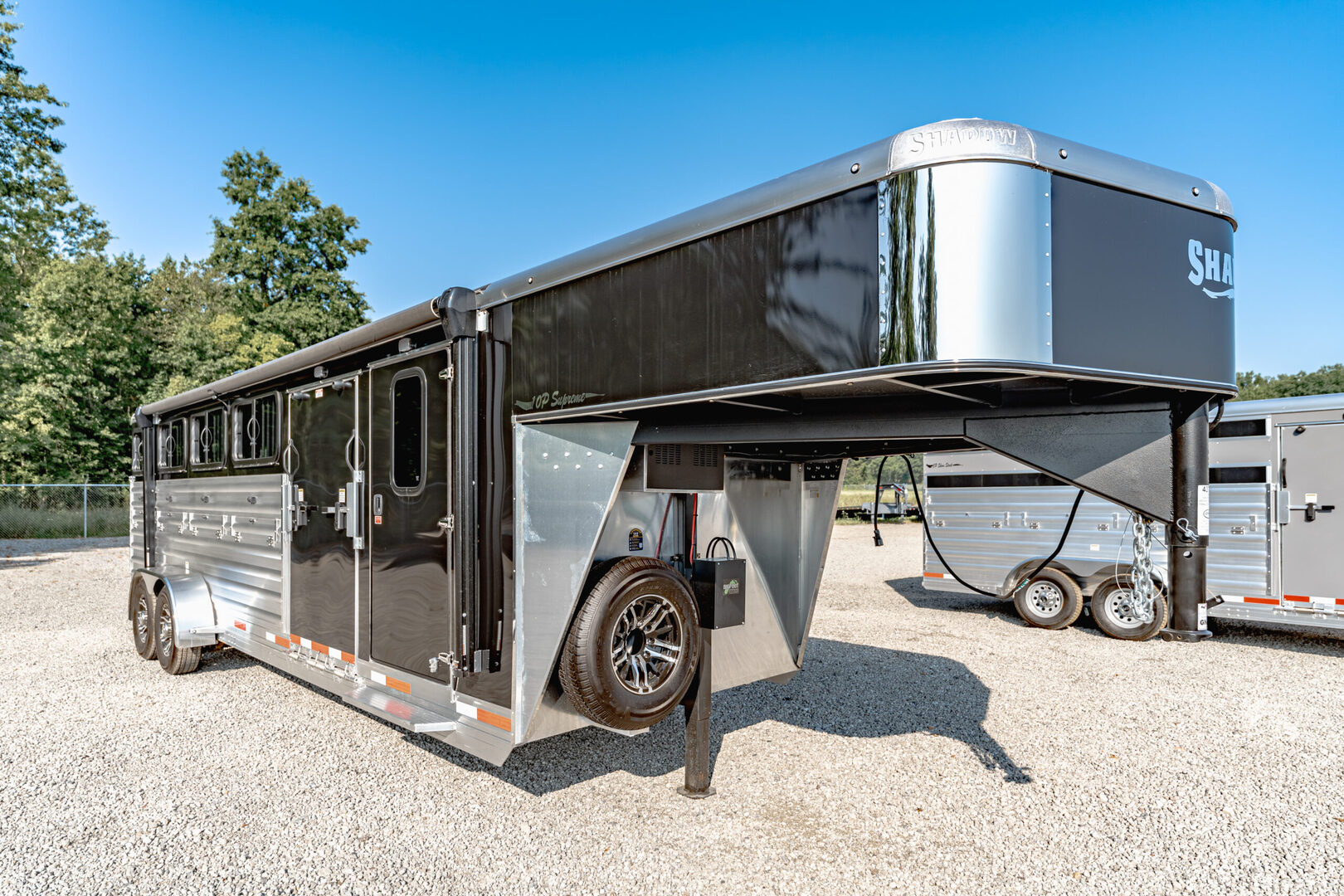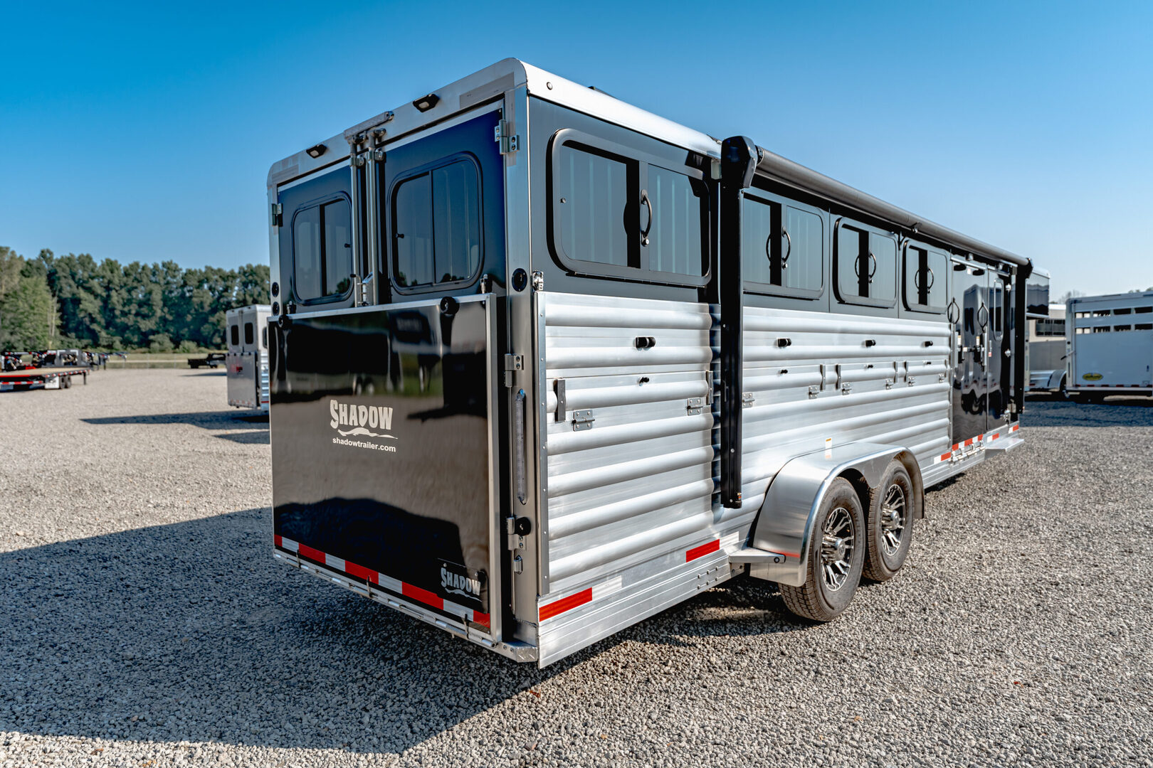 View Inventory: https://leonardtrailers.com/inventory/43770 Stock# 43770 New 2026 Shadow 69250S-10-PEN-GN-D Gooseneck Livestock Trailer  Shadow Stock Trailers are built tough for everyday use on the ranch. Shadow offers 8’ wide.  The spring axles give your stock a much better ride, getting your livestock and horses to their destination with less stress and fatigue. Model:69250S-10-PEN-GN-D Warranty: 6yr-Structural 2yr- Bumper to Bumper  Trailer Details: Supreme 10 Pen Gooseneck Dimensions: 25’ Floor 32’6” OAL 6’6” Tall 6’9” Wide Hydraulic Jack - Single Leg 20’ Electric Awning Drive Train: 7000# Spring Leaf Axles 16” Aluminum Wheels with ST235-80R X 16 Load Range ’E’ Radial Tires Includes Spare Tire Dress Area: 60” Straight Wall 32” Entry Door C/S Horse Area Door Feeder Bars on Straight Wall Stock Area: 42” Side Ramp 10-48” 60/40 or 50/50 Style Pens Dome Lights on Each Side in Stock Area with LED Strip Lighting 50/50 Rear Doors Rear Ramp Roof Lining/Insulation with Roof Vents Lower Wall Lining/Insulation (2) 13.5 BTU Air Conditioners Aluminum Floor with WERM Flooring (2) Outlets in Roof Radius Additional Features: Black Sheeting     We offer outstanding financing options, accept trades, and can arrange nationwide NO HASSLE delivery! Inquire today for more information! (888) 333-6613 **We believe these specifications to be accurate. Any discrepancies are unintentional. Please verify information with a sales associate prior to purchase.** Stock Number:43770