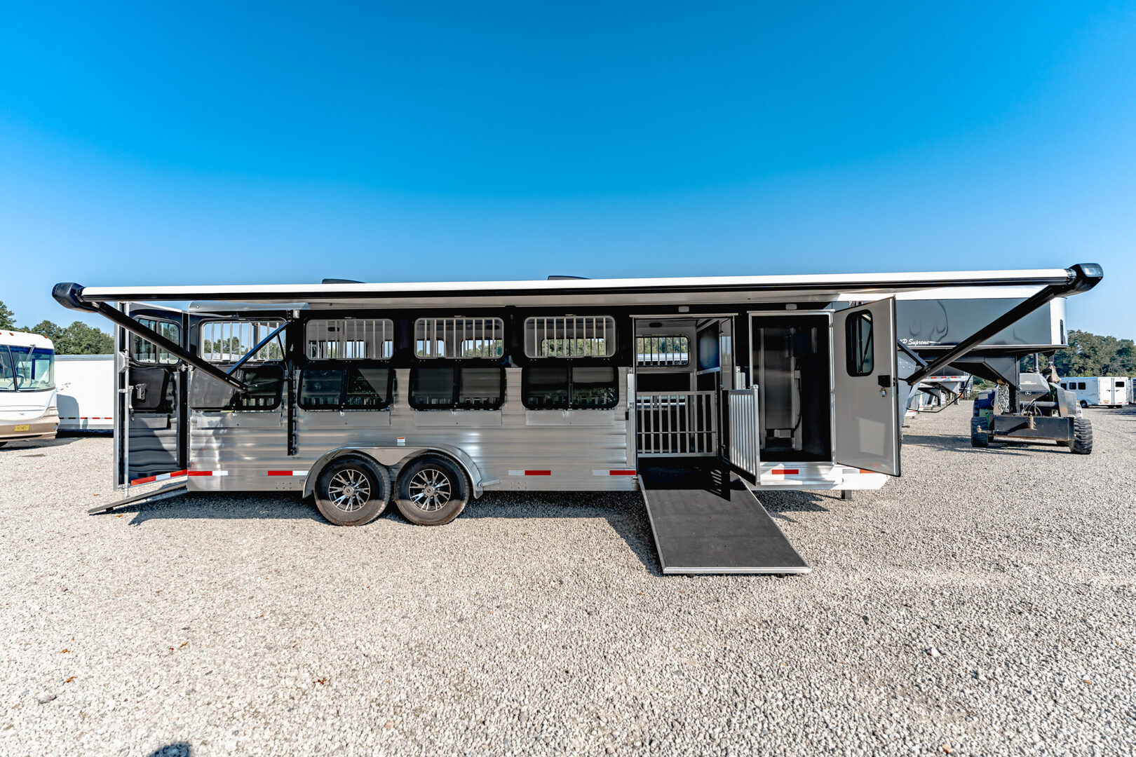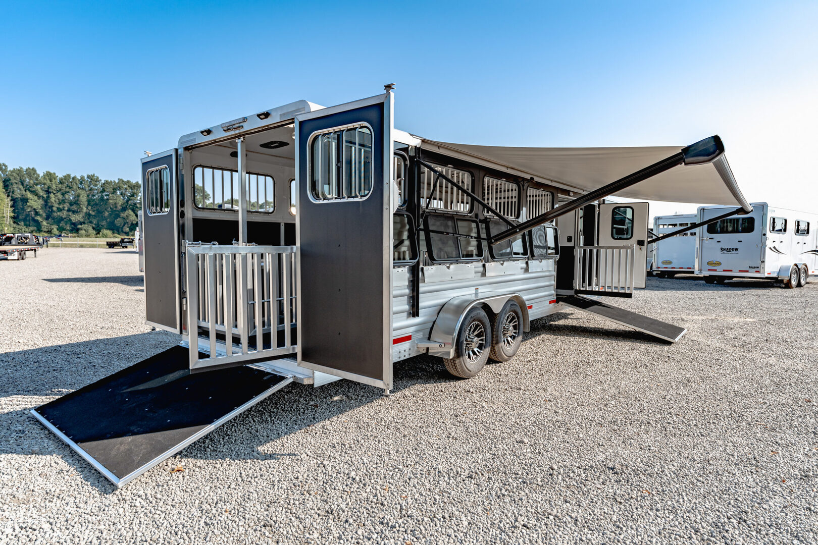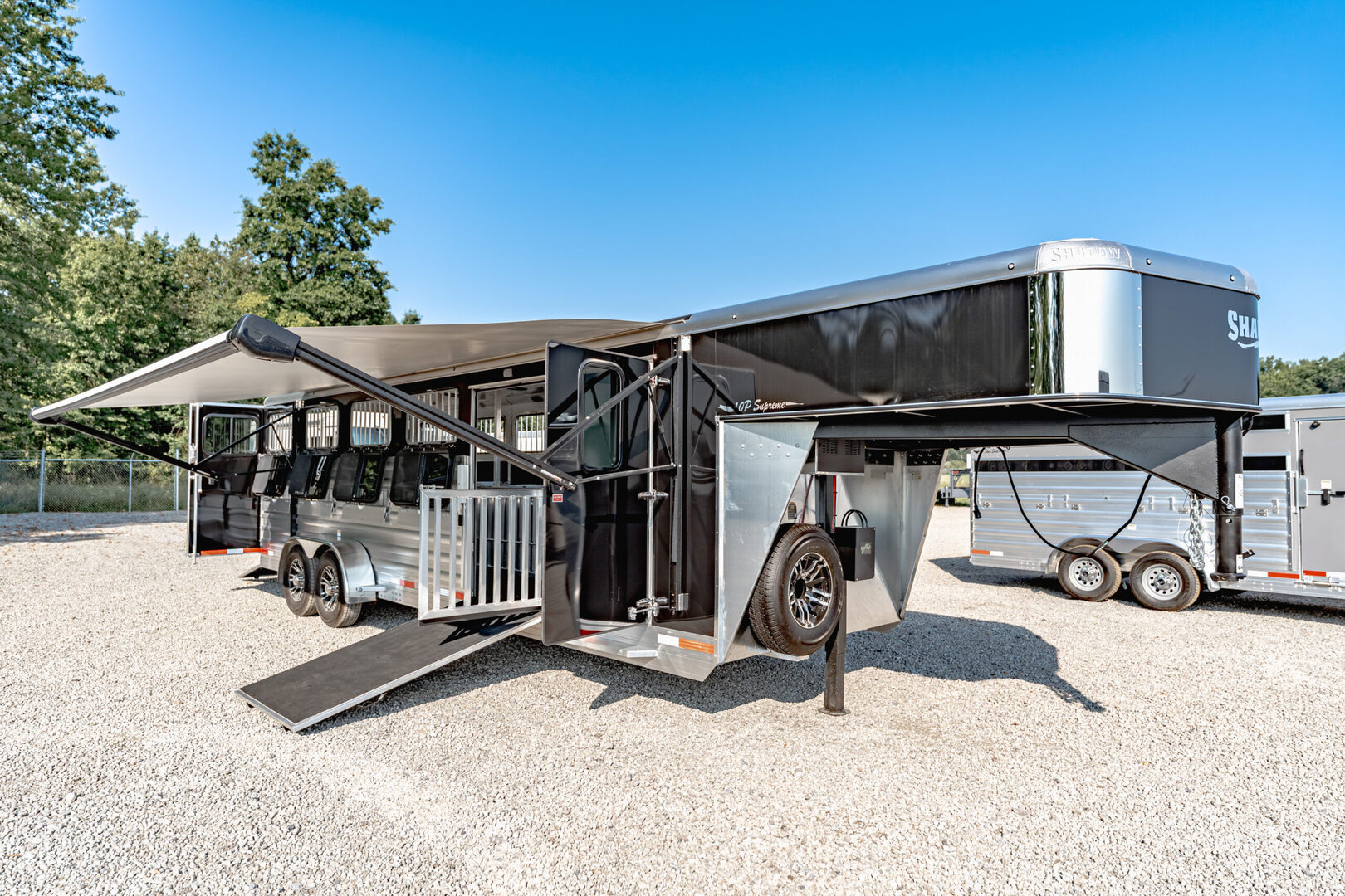 View Inventory: https://leonardtrailers.com/inventory/43770 Stock# 43770 New 2026 Shadow 69250S-10-PEN-GN-D Gooseneck Livestock Trailer  Shadow Stock Trailers are built tough for everyday use on the ranch. Shadow offers 8’ wide.  The spring axles give your stock a much better ride, getting your livestock and horses to their destination with less stress and fatigue. Model:69250S-10-PEN-GN-D Warranty: 6yr-Structural 2yr- Bumper to Bumper  Trailer Details: Supreme 10 Pen Gooseneck Dimensions: 25’ Floor 32’6” OAL 6’6” Tall 6’9” Wide Hydraulic Jack - Single Leg 20’ Electric Awning Drive Train: 7000# Spring Leaf Axles 16” Aluminum Wheels with ST235-80R X 16 Load Range ’E’ Radial Tires Includes Spare Tire Dress Area: 60” Straight Wall 32” Entry Door C/S Horse Area Door Feeder Bars on Straight Wall Stock Area: 42” Side Ramp 10-48” 60/40 or 50/50 Style Pens Dome Lights on Each Side in Stock Area with LED Strip Lighting 50/50 Rear Doors Rear Ramp Roof Lining/Insulation with Roof Vents Lower Wall Lining/Insulation (2) 13.5 BTU Air Conditioners Aluminum Floor with WERM Flooring (2) Outlets in Roof Radius Additional Features: Black Sheeting     We offer outstanding financing options, accept trades, and can arrange nationwide NO HASSLE delivery! Inquire today for more information! (888) 333-6613 **We believe these specifications to be accurate. Any discrepancies are unintentional. Please verify information with a sales associate prior to purchase.** Stock Number:43770