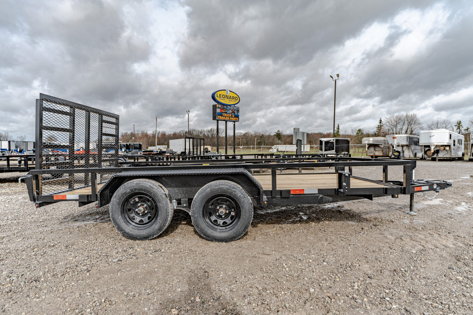 View Inventory: https://leonardtrailers.com/inventory/43789 Stock#43789 New 2025 H&H H8214TRS-070 Utility Trailer  Strong and simple, the sturdy steel frame of the Rail Side Utility trailer is fully powder coated for years of reliable service. LED lighting, enclosed sealed wiring harness and plug, spare mount, and EZ lube hubs are all standard features.  The Rail Side Utility trailer is available in several single and tandem axle configurations.  Its durable design makes this our most popular trailer. Model:H8214TRS-070 Warranty: 3yr: Limited Standard Features Frame: 4” x 3” x 1/4” Steel Angle Crossmembers: 3” x 2” x 3/16” Steel Angle Tongue: 4” Steel Channel, Fully Wrapped Coupler: 2-5/16” A-Frame, Posi-Lock Safety Chains: DOT Compliant Tongue Jack: 2K Set-Back Top Rail: 2” x 2” Steel Tube Uprights: 2” x 1 1/2” Steel Tube Ramp(s): 50” Fold-Flat, Spring-Assist with Grab Handle Fenders: Double Break Tread Plate Axle: (2) 3500 lb. Spring Brake Hubs: Easy Lube Breakaway: Battery, Switch, and Lanyard Tires: ST205/75R15C 6-PR Wheels: 15”, 5-Hole Steel Exterior Finish: Industrial Grade Polymer Finish Decking: 2” Pressure Treated Pine Decking: Board Retainers Tie Downs: Stake Pockets Exterior Storage: Spare Tire Carrier Connector Plug: Round 7-pin Blade Wiring: Enclosed Sealed Wiring Harness Exterior Lights: Full LED, DOT Compliant Additionally: UPG: 4FT Tall Ladder Style Gate SPR AST   We offer outstanding financing options, accept trades, and can arrange nationwide NO HASSLE delivery! Inquire today for more information! (888) 333-6613 **We believe these specifications to be accurate. Any discrepancies are unintentional. Please verify information with a sales associate prior to purchase.** Stock Number:43789