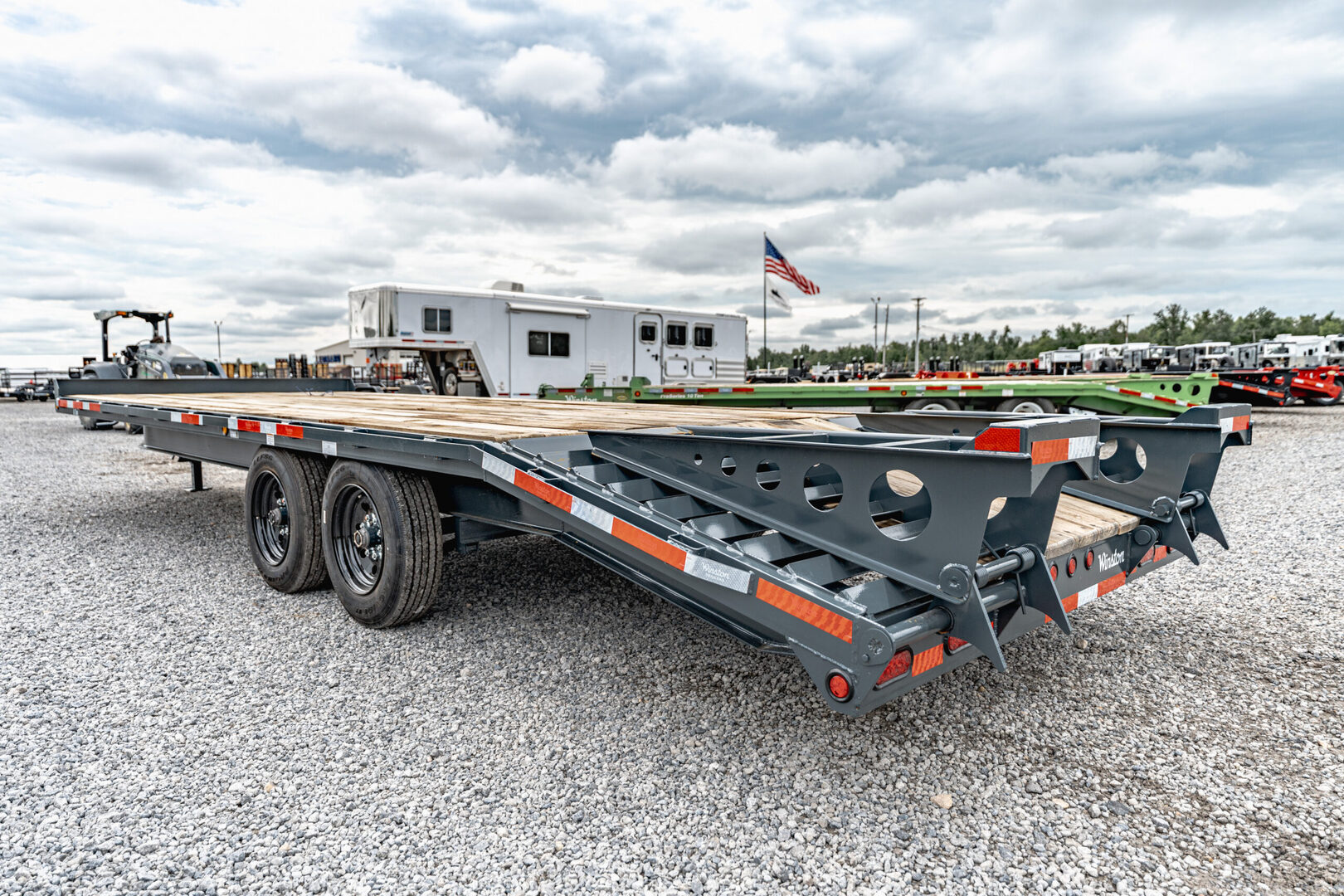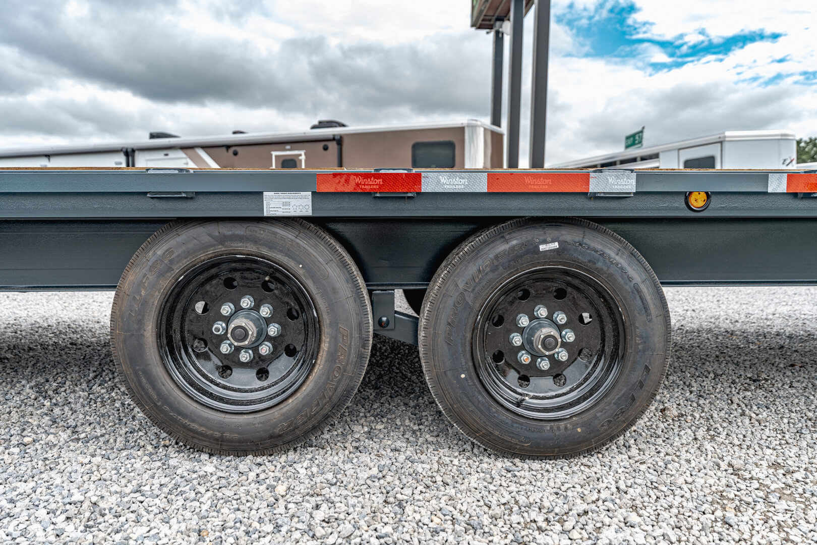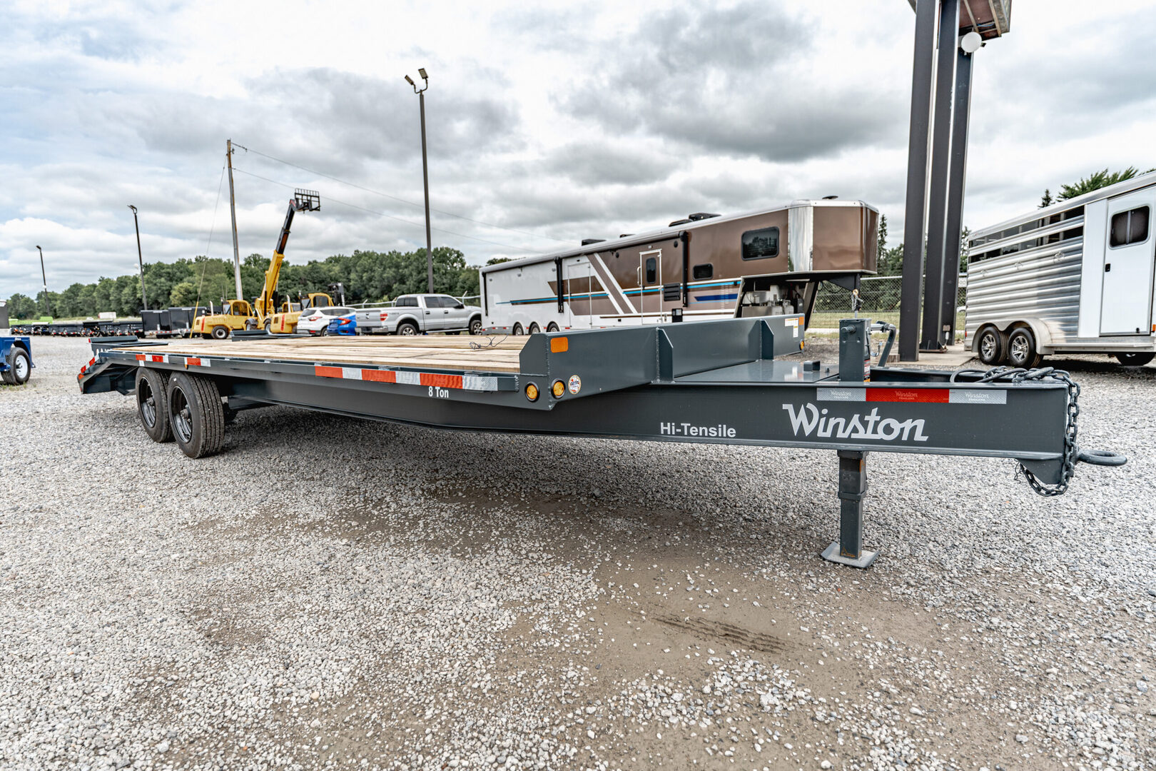 Stock# 43892 New 2026 Winston AP20825EC Equipment Bumper Pull Trailer  The 6, 7, and 8 Ton Custom Series deckover tandem trailers with single wheels will handle light equipment with 5' dovetail and 5' flat style spring assist ramps, making loading easy for a large variety of equipment along with building materials or even hay. These trailers also offer great balance and easy load positioning for great towing behind 1 ton tow vehicles. Model:AP20825EC Warranty: 1yr: Limited Trailer Specs: 8 Ton Tandem Custom Series 20’+5’+5’ Spring Assist Flat Ramps 102” Wide Electric Brakes 215/75R17.5H Tires Lippert Axles on Single Wheels Rubrails with Stakepockets LED Lights Self Cleaning Inserts 8–12 Ton Black Wheels Dark Gray   We offer outstanding financing options, accept trades, and can arrange nationwide NO HASSLE delivery! Inquire today for more information! (888) 333-6613 **We believe these specifications to be accurate. Any discrepancies are unintentional. Please verify information with a sales associate prior to purchase.** Stock Number:43892