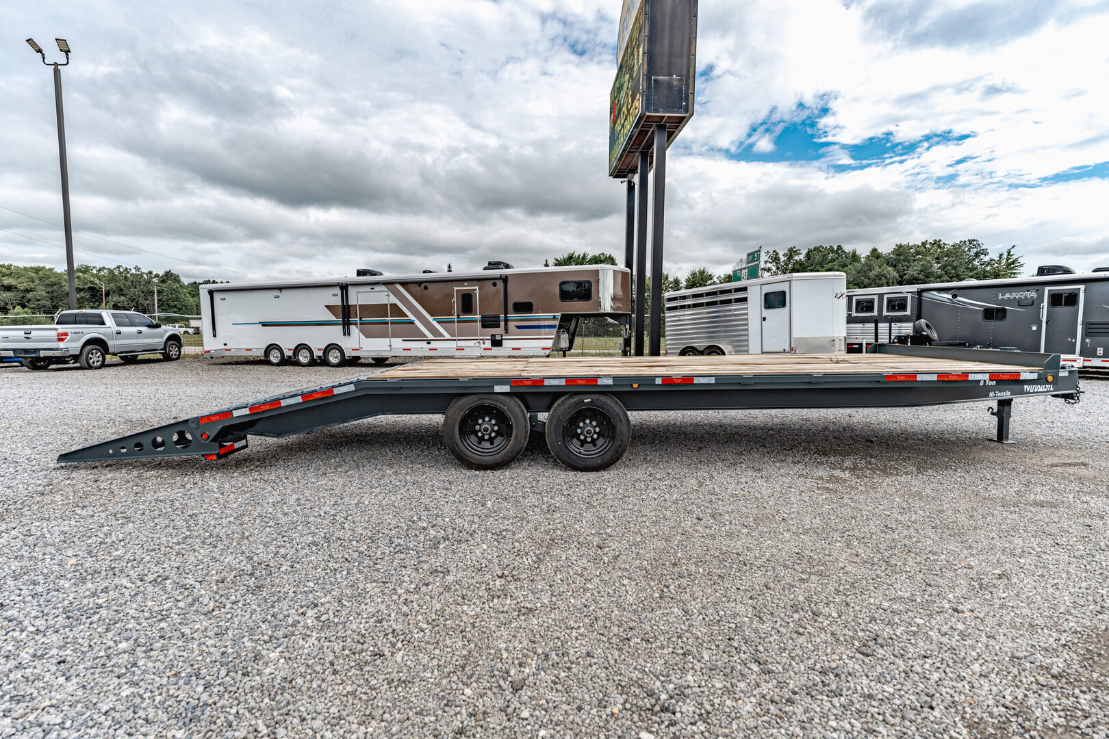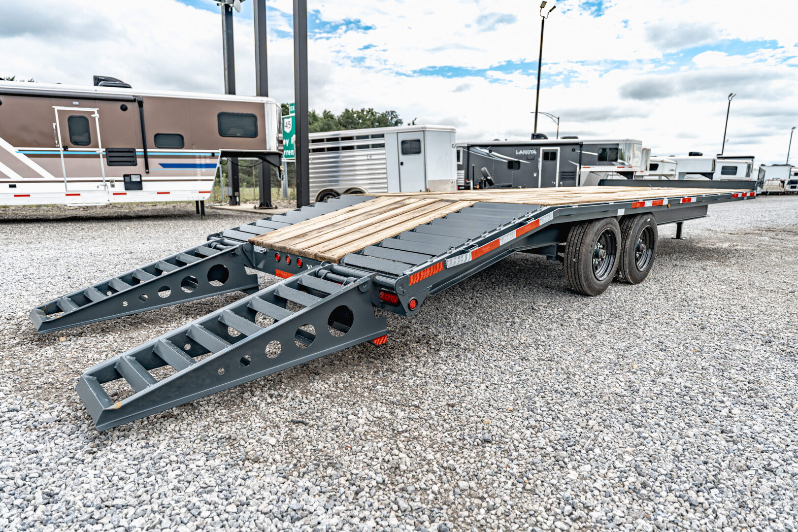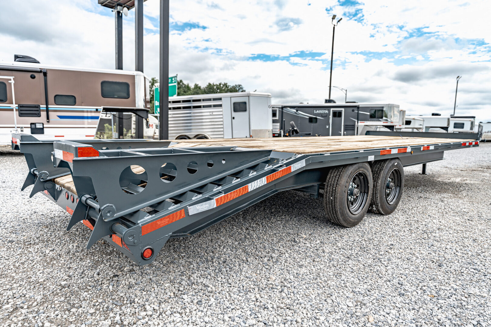 Stock# 43892 New 2026 Winston AP20825EC Equipment Bumper Pull Trailer  The 6, 7, and 8 Ton Custom Series deckover tandem trailers with single wheels will handle light equipment with 5' dovetail and 5' flat style spring assist ramps, making loading easy for a large variety of equipment along with building materials or even hay. These trailers also offer great balance and easy load positioning for great towing behind 1 ton tow vehicles. Model:AP20825EC Warranty: 1yr: Limited Trailer Specs: 8 Ton Tandem Custom Series 20’+5’+5’ Spring Assist Flat Ramps 102” Wide Electric Brakes 215/75R17.5H Tires Lippert Axles on Single Wheels Rubrails with Stakepockets LED Lights Self Cleaning Inserts 8–12 Ton Black Wheels Dark Gray   We offer outstanding financing options, accept trades, and can arrange nationwide NO HASSLE delivery! Inquire today for more information! (888) 333-6613 **We believe these specifications to be accurate. Any discrepancies are unintentional. Please verify information with a sales associate prior to purchase.** Stock Number:43892