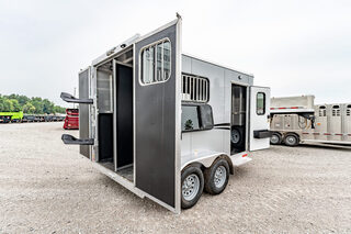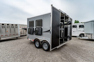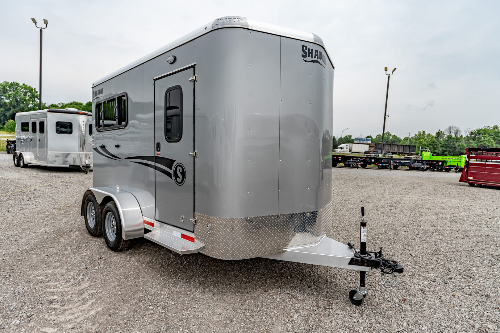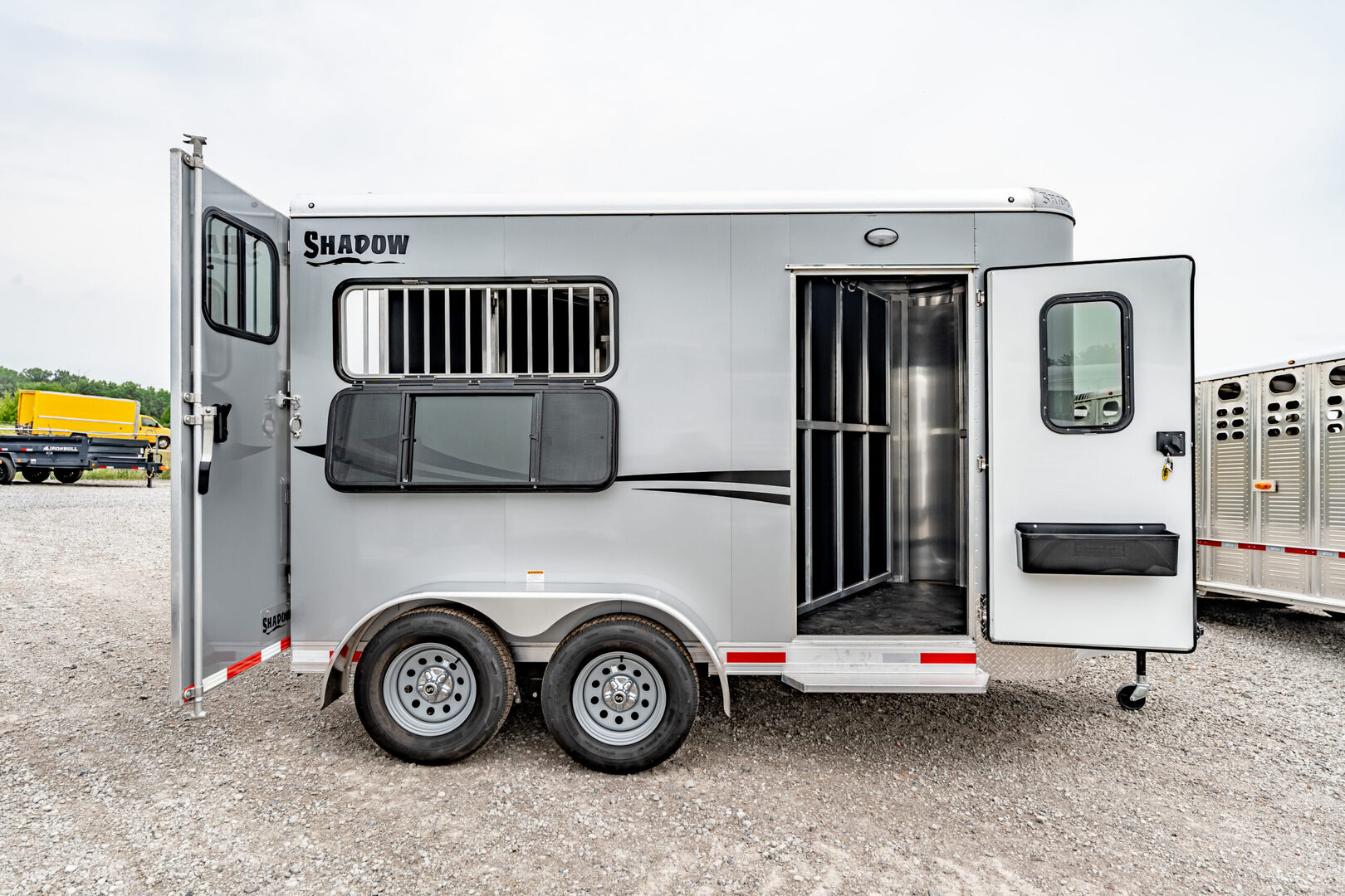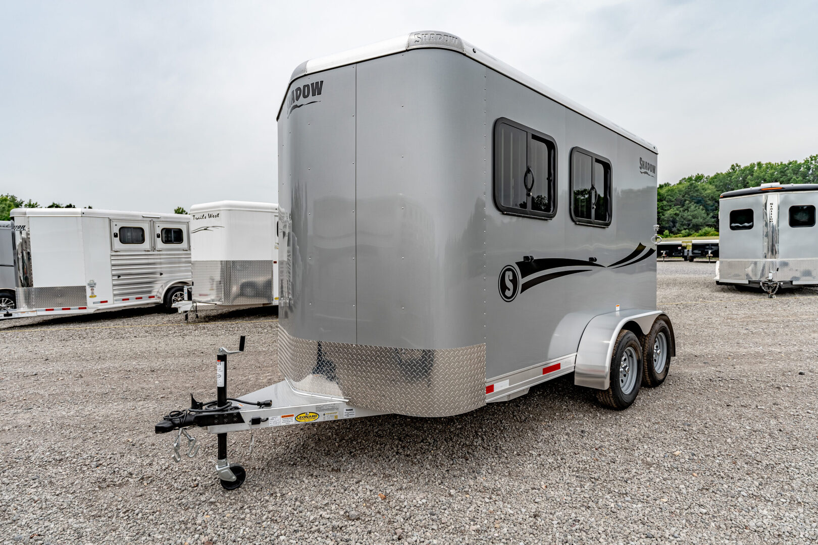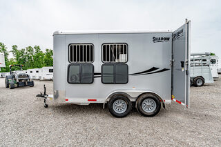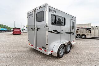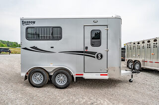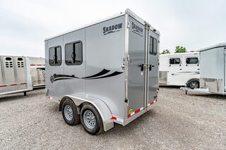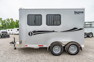 Stock# 43921 New 2026 Shadow 69136W-2SL-BP Bumper Pull Horse Trailer  Shadow Trailer LLC identified the need for a quality horse trailer that could be easily pulled with a lightweight truck or SUV. The Stablemate family comes with all aluminum 1, 2, 3, and 4-horse bumper pull models. Today, the popular Stablemates are available as slant loads, straight loads, and stock trailers. Available in Goosenecks as well. Stablemate models are very affordable all aluminum trailers that maintain the quality and safety Shadow Trailers are known for. The Stablemates are very versatile with the dressing room wall on hinges, thus creating a versatile cargo trailer perfect for countless tasks. Model:69136W-2SL-BP Warranty: 6yr- Structural 2yr-Bumper to Bumper  Bumper Pull Slant Load Trailer Floor Dimensions: 13’6” Floor 15’6” Overall Length (OAL) 6’9” Wide 7’6” Tall Construction: 38” Escape Door Aluminum Sheeting / Slick Skin Pressure Treated Wood Floor with Rubber Mats Drive Train: 3500# Spring Leaf Axles 15” Tires Includes spare tire Dress Area: 4’ Dress on Long Wall 32” Dress Door with 14x24 Window Swinging Slant Wall Saddle Rack Mounts (2) 6 Hook Bridle Hooks Brush Box on Dress Door Dome Light Spare Tire Mounted to Front Wall Horse Area: 42” Stall Width 24x32 Drop Feed Windows (Streetside) 19x53 Drop Feed Window (Curbside) Lined Lower Walls Aluminum Stall Divider with Rumber Inserts Dome Light 50/50 Rear Doors with Window in Load Door Rear Tack: Folding Tack Wall Swing Out Saddle Rack with Saddle Boss Racks (2) Bridle Hooks   We offer outstanding financing options, accept trades, and can arrange nationwide NO HASSLE delivery! Inquire today for more information! (888) 333-6613 **We believe these specifications to be accurate. Any discrepancies are unintentional. Please verify information with a sales associate prior to purchase.** Stock Number:43921