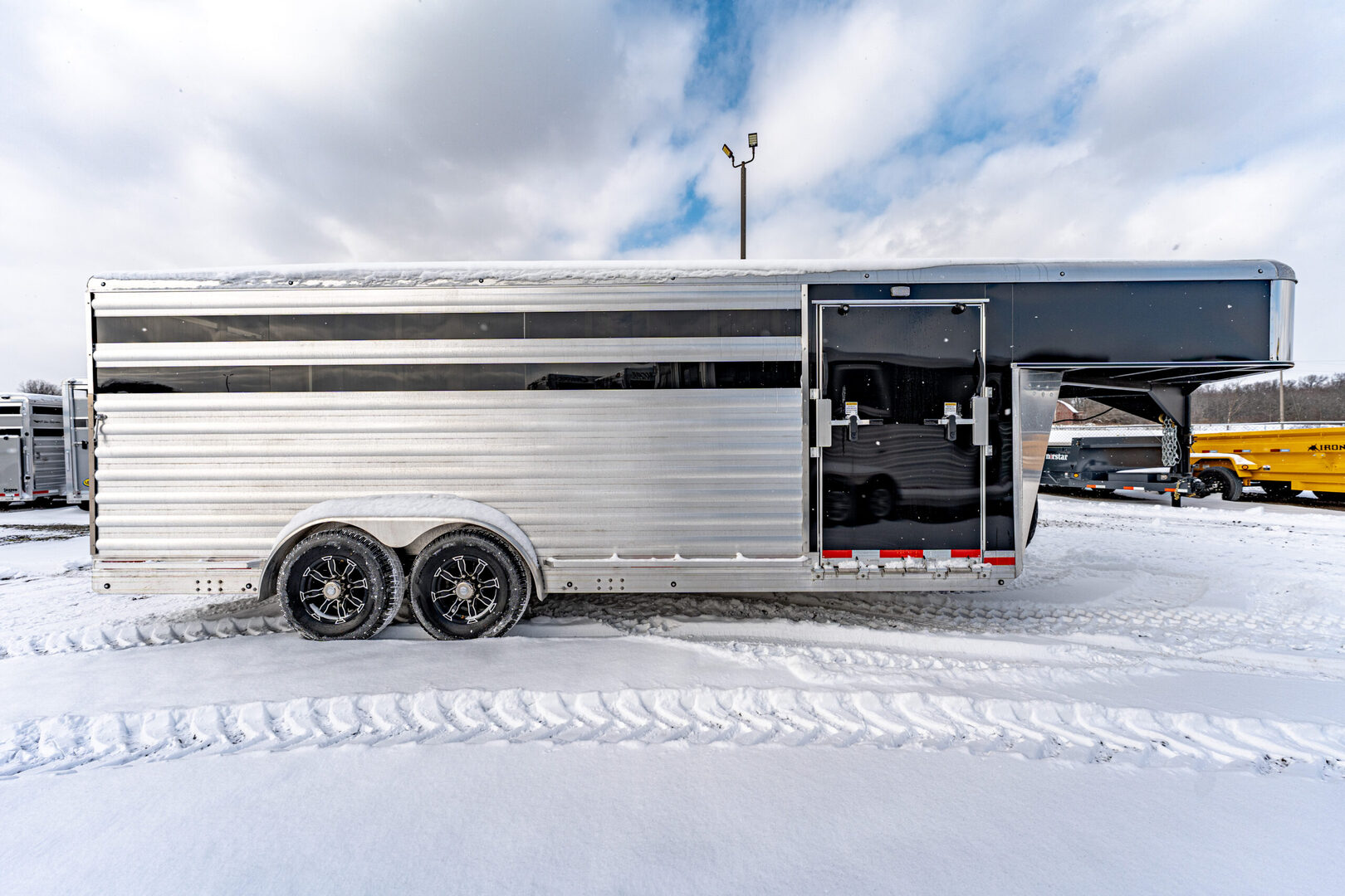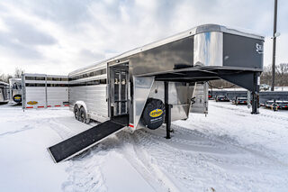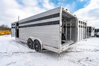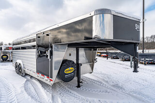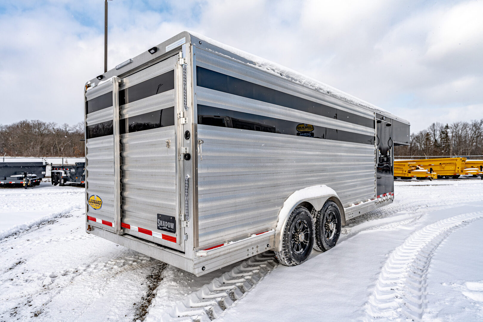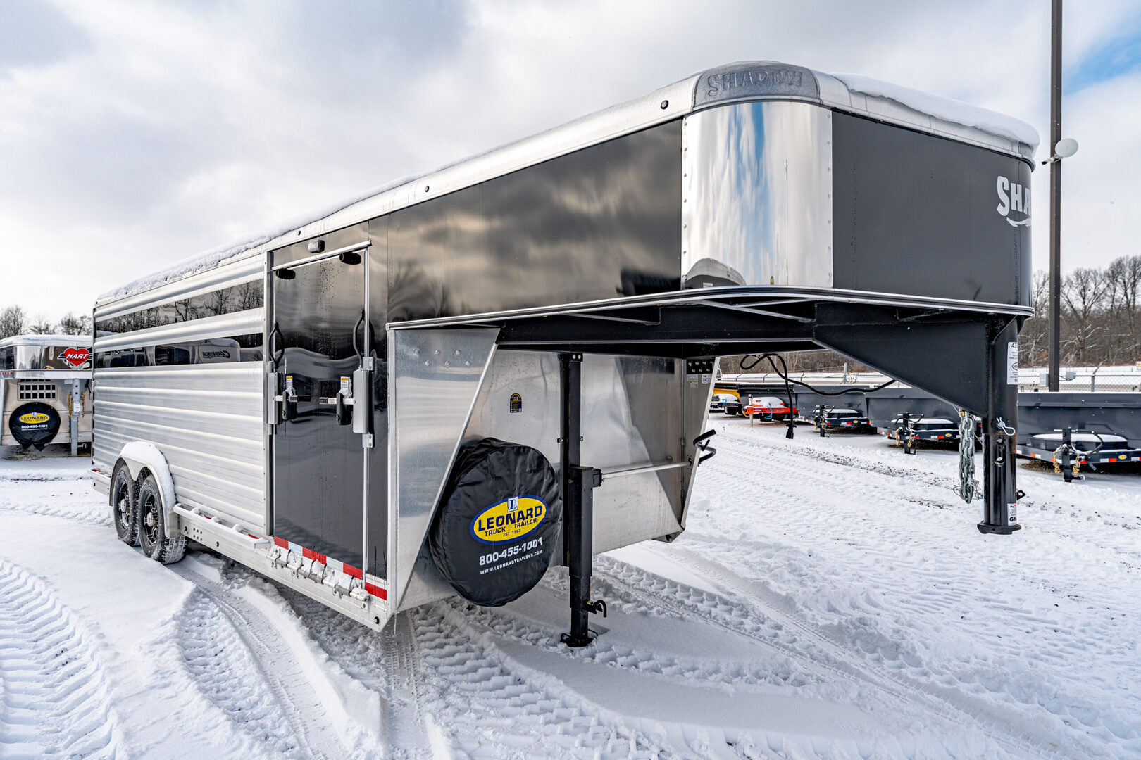 View Inventory: https://leonardtrailers.com/inventory/43920 Stock# 43920 New 2026 Shadow 80200STK-GN Gooseneck Pro Livestock Trailer  Shadow Stock Trailers are built tough for everyday use on the ranch. Shadow offers 8’ wide.  The spring axles give your stock a much better ride, getting your livestock and horses to their destination with less stress and fatigue. Model:80200STK-GN Warranty: 6yr-Structural 2yr- Bumper to Bumper Trailer Specifications 8’ Wide 6’6” Tall 20’ Floor 27’ OAL 2 5/16” Coupler Manual Jack 7K Torsion Axles w/ Electric Brakes 16” Steel Wheels with E Rated Tires No Lining and Insulation in Roof No Lining in Walls No Windows in Nose Aluminum Floor Cut Gate with Center Swing-Out Door Escape Door Rear Door (Options: 50/50, Single Rear with Slider, or No Slider) No Rear Ramp Load Light with Switch Rear Switch for Stock Area Lights Calf Gate in Nose Additional Options Floating Cut Gate with Walk-Thru 42” Full Height Side Ramp Werm Floor Smoked Plexi Lower Tie Rail Black Inlay Wheels Black Sheeting   We offer outstanding financing options, accept trades, and can arrange nationwide NO HASSLE delivery! Inquire today for more information! (888) 333-6613 **We believe these specifications to be accurate. Any discrepancies are unintentional. Please verify information with a sales associate prior to purchase.** Stock Number:43920