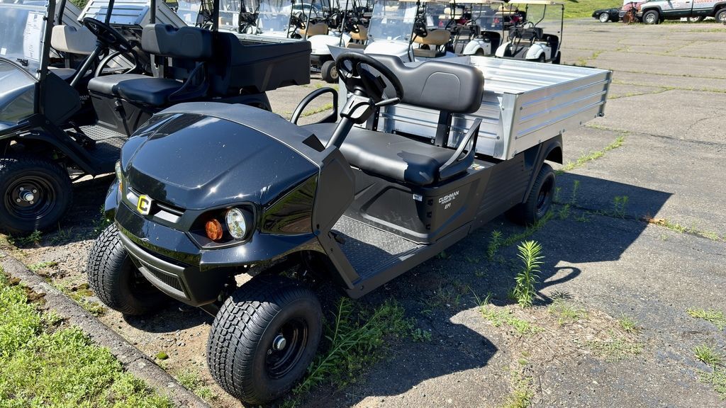 Connecticut Trailers features the following options for this Cushman Golf Car: • Tail Lights • Black Seats • Headlights • Turn Signals • Aluminum 6’ Bed • Hitch • Brushguard