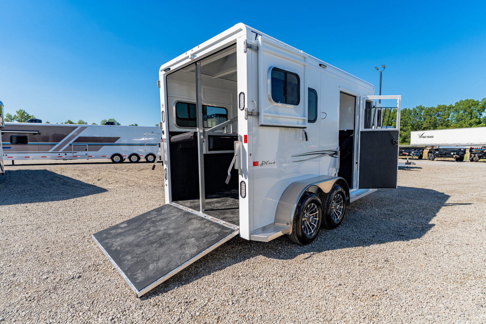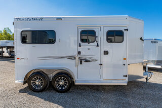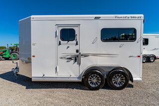 Stock# 44041 2026 Trails West ROYALE BP PLUS Bumper Pull Horse Trailer Do you haul a big horse? Well, look no further than the Trails West Royale. This side-by-side trailer features one of the industry’s largest stalls, giving your horse the comfort and ride they deserve. The walk-through loading style makes it a breeze to safely load and unload your horses. And our Royale Plus model allows the inside divider and hardware to be easily removed creating a single large box stall for whatever you’re looking to haul.. Warranty: 1yr- Paint/Trim 5yr- Structural Royale BP Plus Horse Trailer Model Description Type: Bumper Pull Horse Trailer Appearance & Branding Graphics Package: Roy-Char Logos: 1 – Charcoal Cove Logos: 1 – Charcoal Standard Equipment Axles: 3,500# Tires: ST225/75R15 LRD Optional Package Convenience Package: Royale Plus   We offer outstanding financing options, accept trades, and can arrange nationwide NO HASSLE delivery! Inquire today for more information! (888) 333-6613 **We believe these specifications to be accurate. Any discrepancies are unintentional. Please verify information with a sales associate prior to purchase.** Stock Number:44041