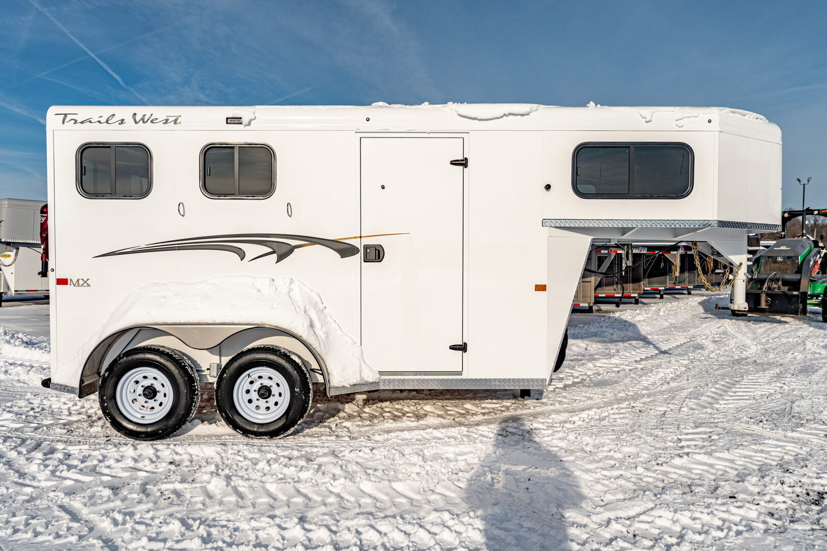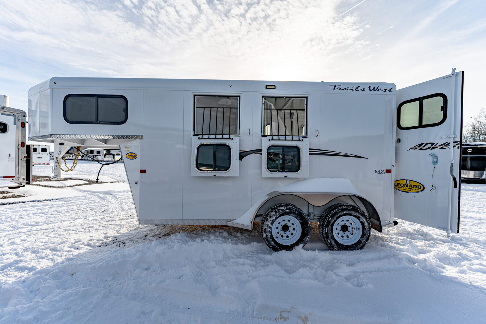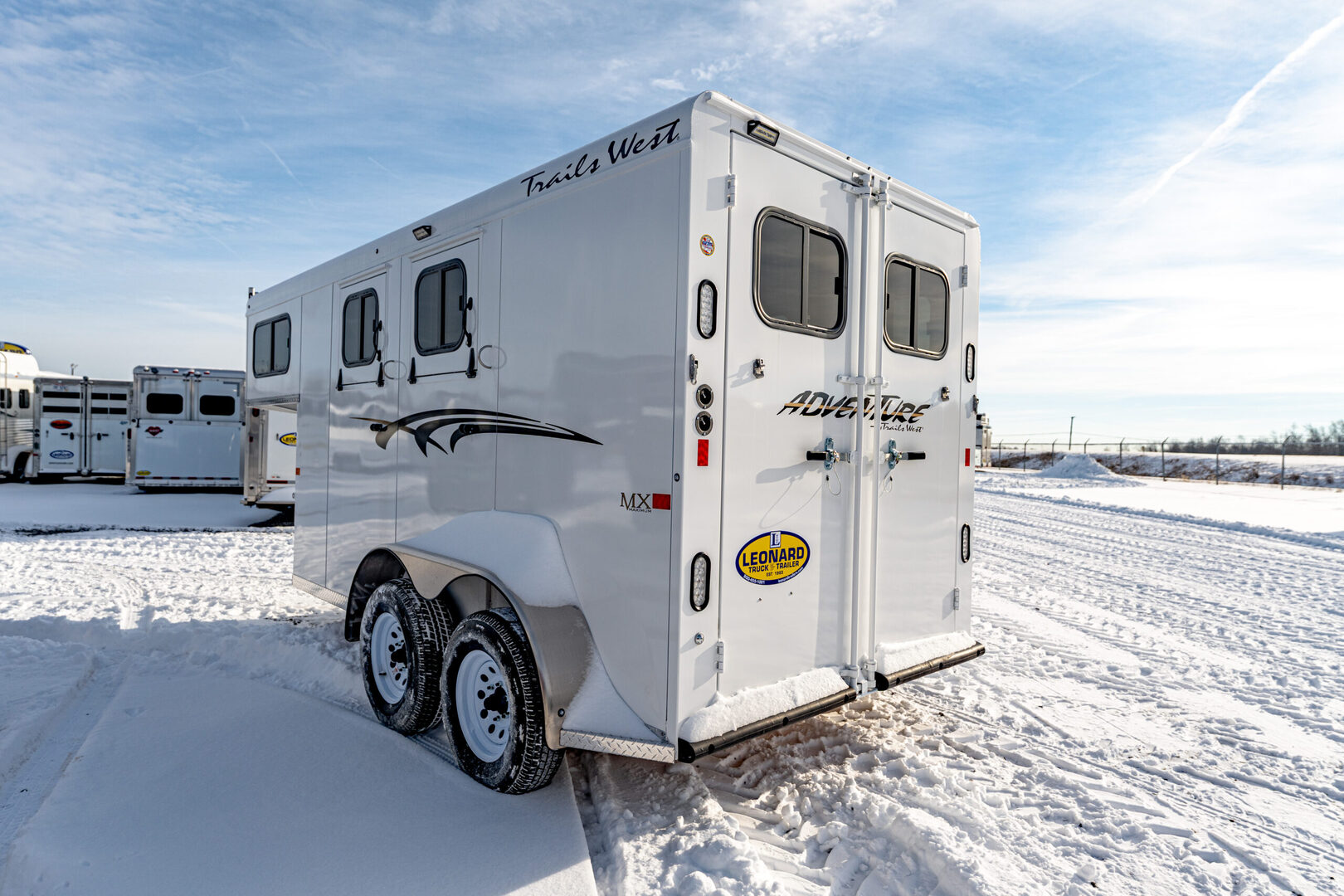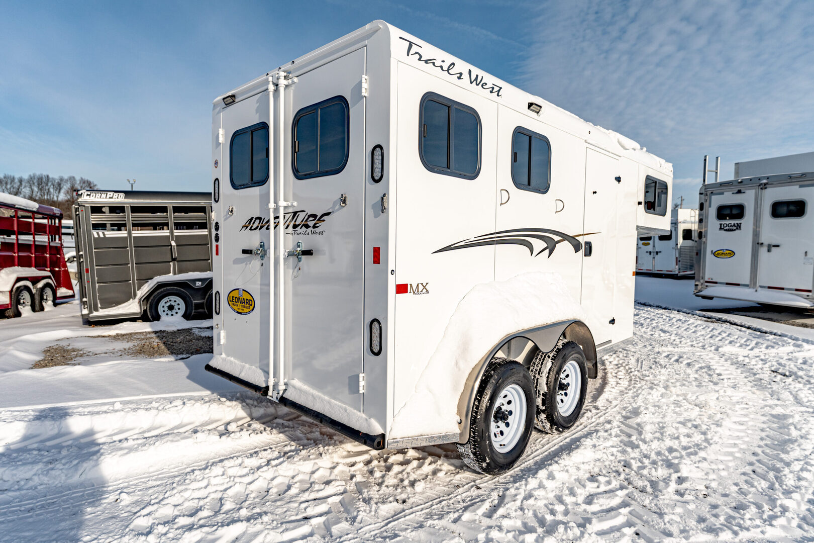View Inventory: https://leonardtrailers.com/inventory/44056 Stock# 44056 2026 Trails West Adventure MX 2 Horse Trailer Warranty: 1yr- Paint/Trim 5yr- Structural Model Description Type: Bumper Pull Horse Trailer Standard Equipment Axles: 3,500# Tires: ST225/75R15 LRD   We offer outstanding financing options, accept trades, and can arrange nationwide NO HASSLE delivery! Inquire today for more information! (888) 333-6613 **We believe these specifications to be accurate. Any discrepancies are unintentional. Please verify information with a sales associate prior to purchase.** Stock Number:44056
